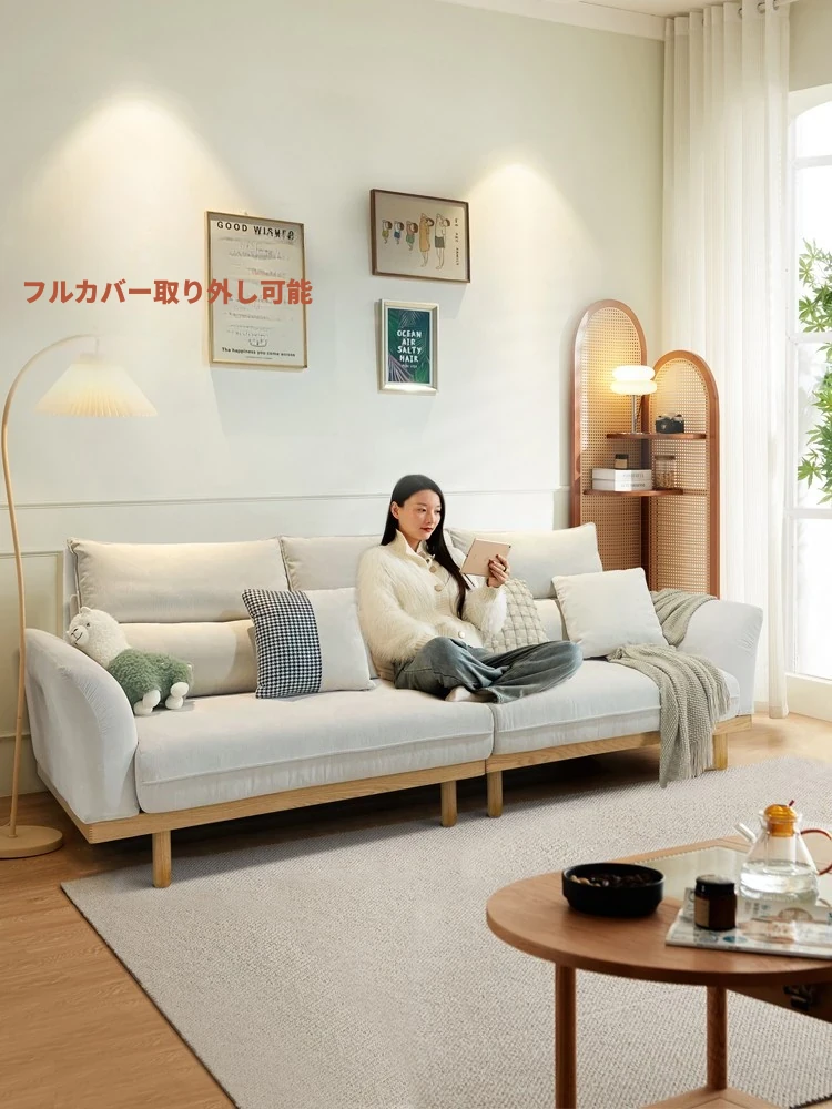 【極上の快適】木と風のインテリア 侘寂クリーム色 ナチュラルウッドスタイル テクノロジーファブリック&キャットスクラッチファブリック リビングルーム ソファー 人気の直列式デザイン