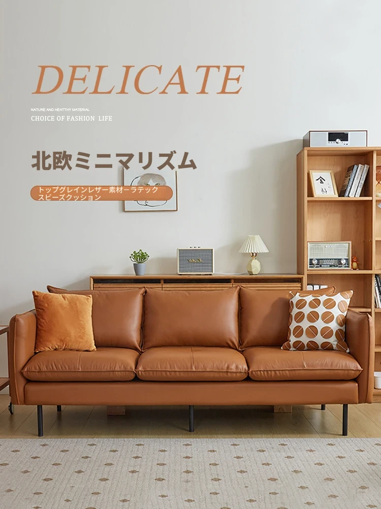 北欧モダンデザインの本革ソファ|小スペースにぴったり!3人掛けリビング用家具、デザイナーズラテックスレザーソファ