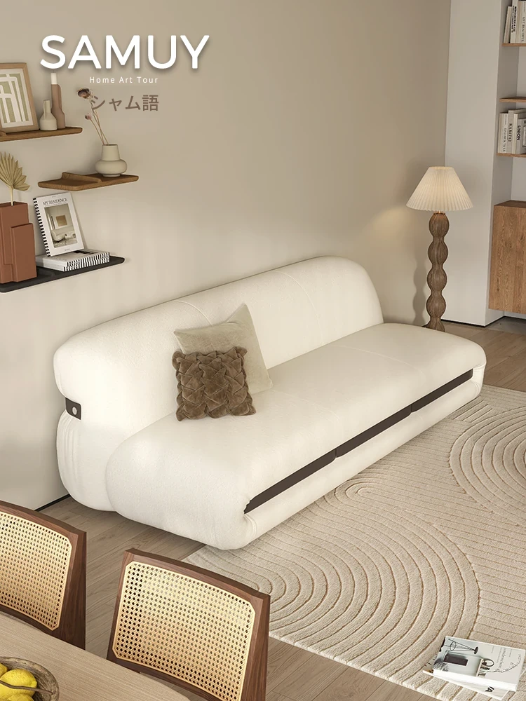クリーミータッチのラムウール風ソファ - 小型リビングに最適!シンプルでレトロなデザイン、SNSで人気の綿あめソファ 2〜3人掛け布製ソファ