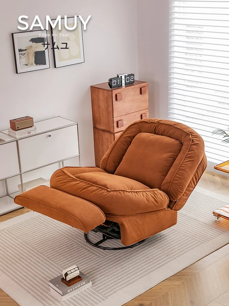 デザイナー本革一人掛けソファ:中世風の軽高級感、人気デザイン、リビング&バルコニーに最適、簡約おしゃれなリラックス回転ロッキングチェア
