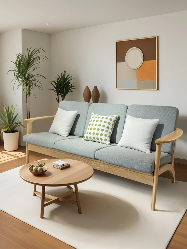 【北欧モダン】小型リビングにぴったりな日式無垢材3人掛けソファ - シンプル&コーデュロイ生地で贅沢な快適さを!