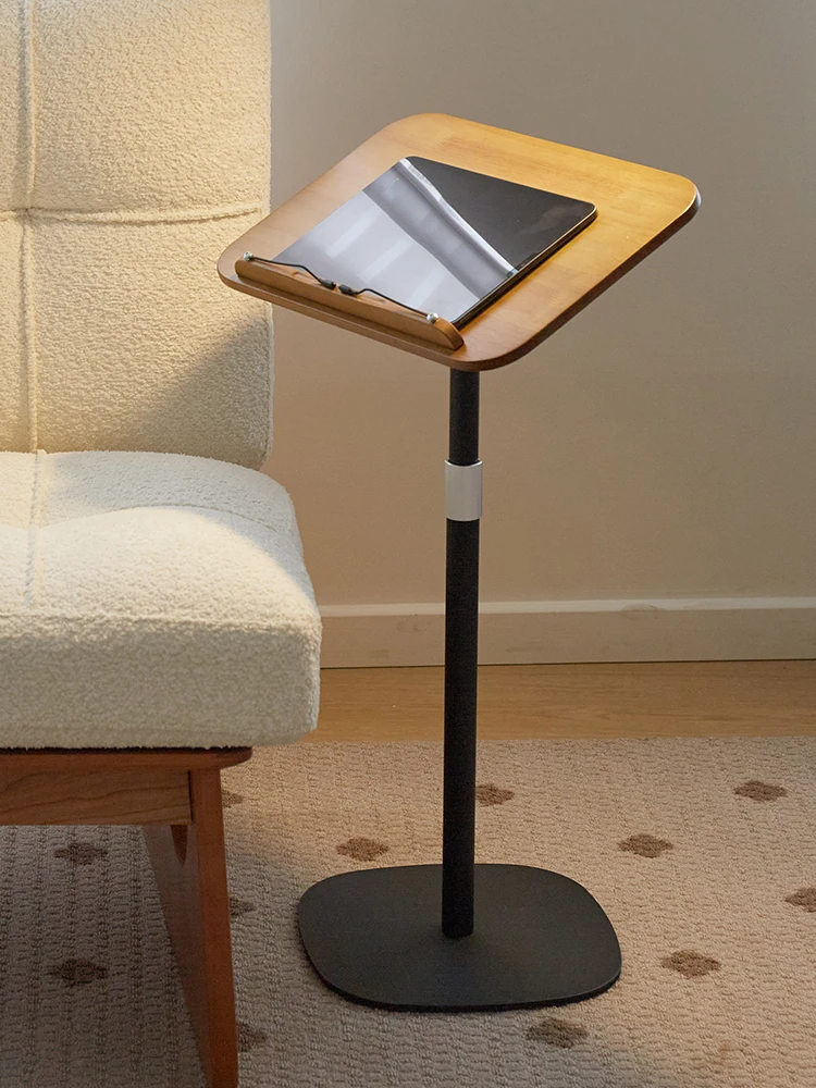 おしゃれな小型サイドテーブル|天然木製で丈夫なリビング用|簡単に移動できる読書スタンド付き|ベッドサイドやリビングで使える便利な昇降式デザイン!