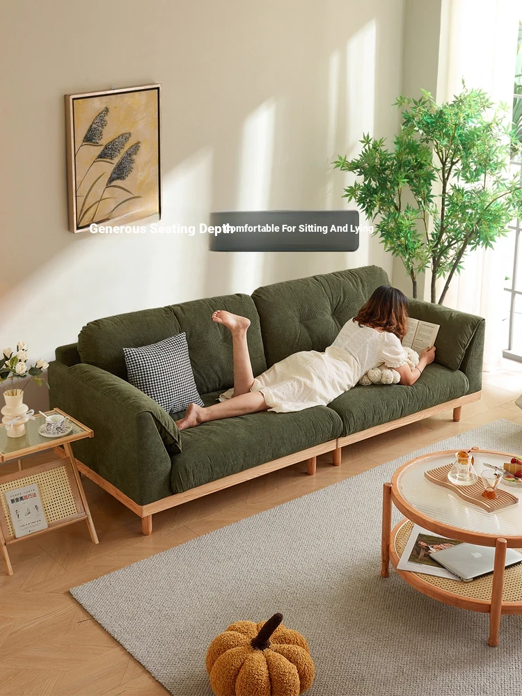 Japanese Solid Wood Sofa for Small Living Rooms - Modern Nordic Design with Three Seats, Versatile Corduroy Fabric for All Seasons. Perfect Cozy Addition to Your Home.
