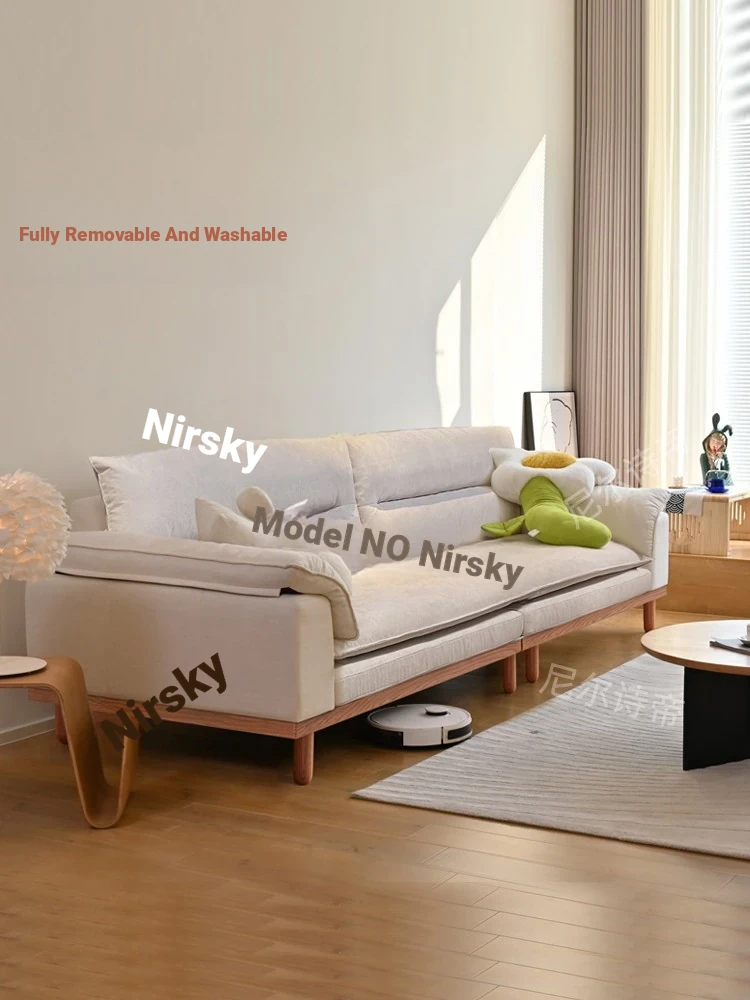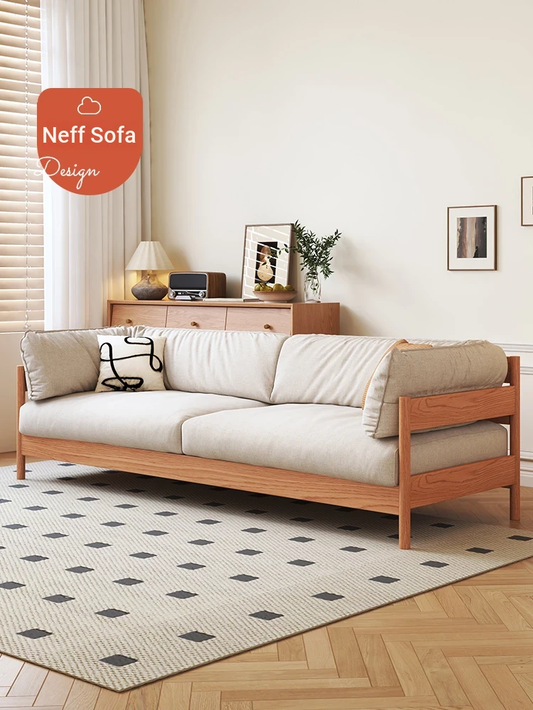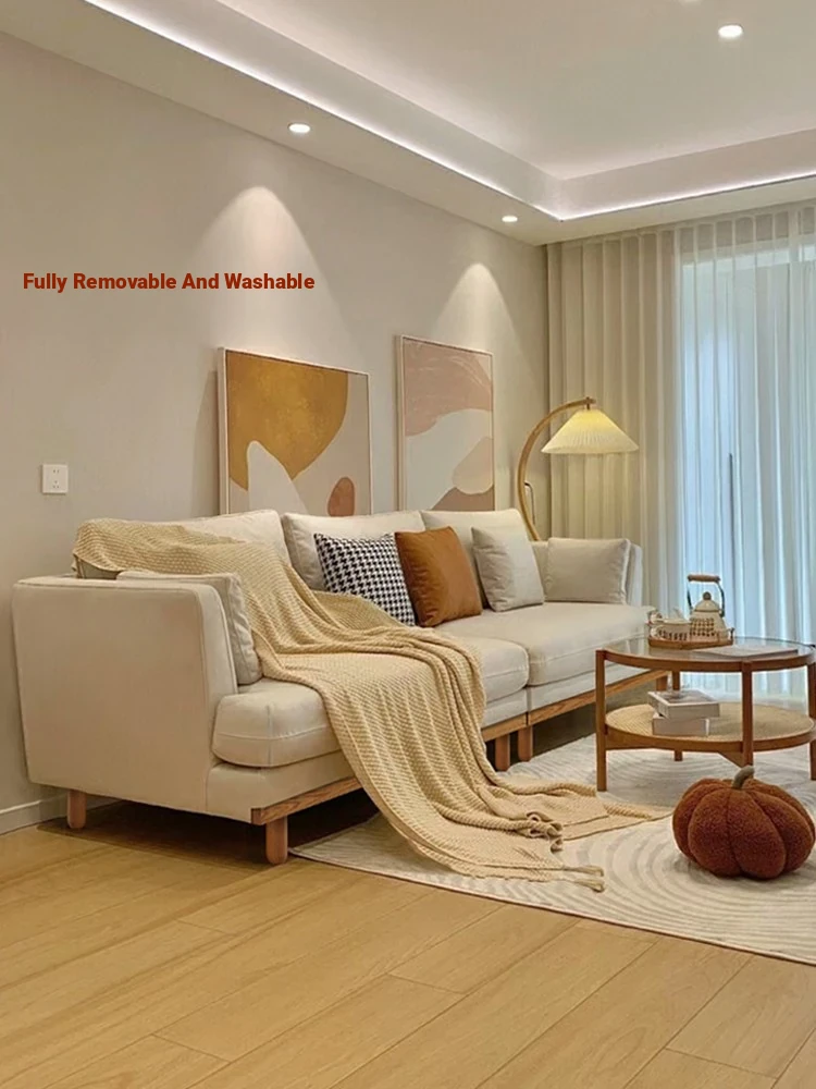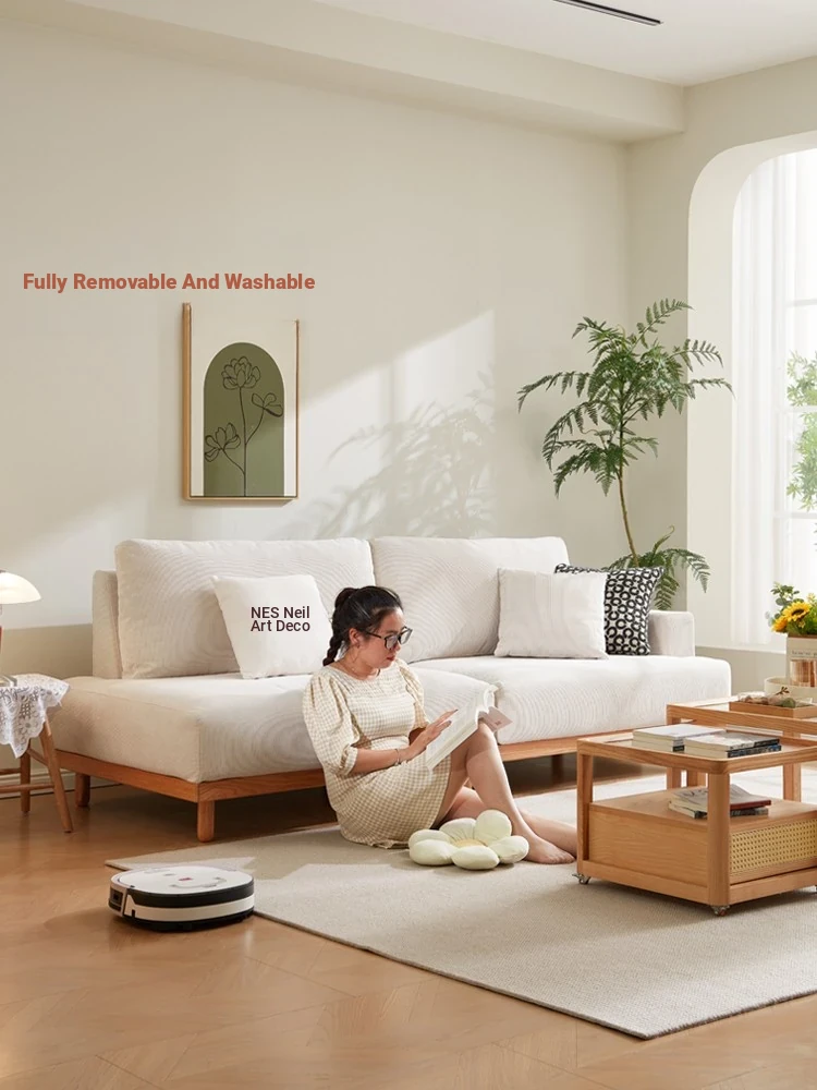 NeilStudio Cream-Style Wood & Linen Sofa - Removable & Washable, Perfect for Small Living Rooms - Embrace Wabi-Sabi Elegance