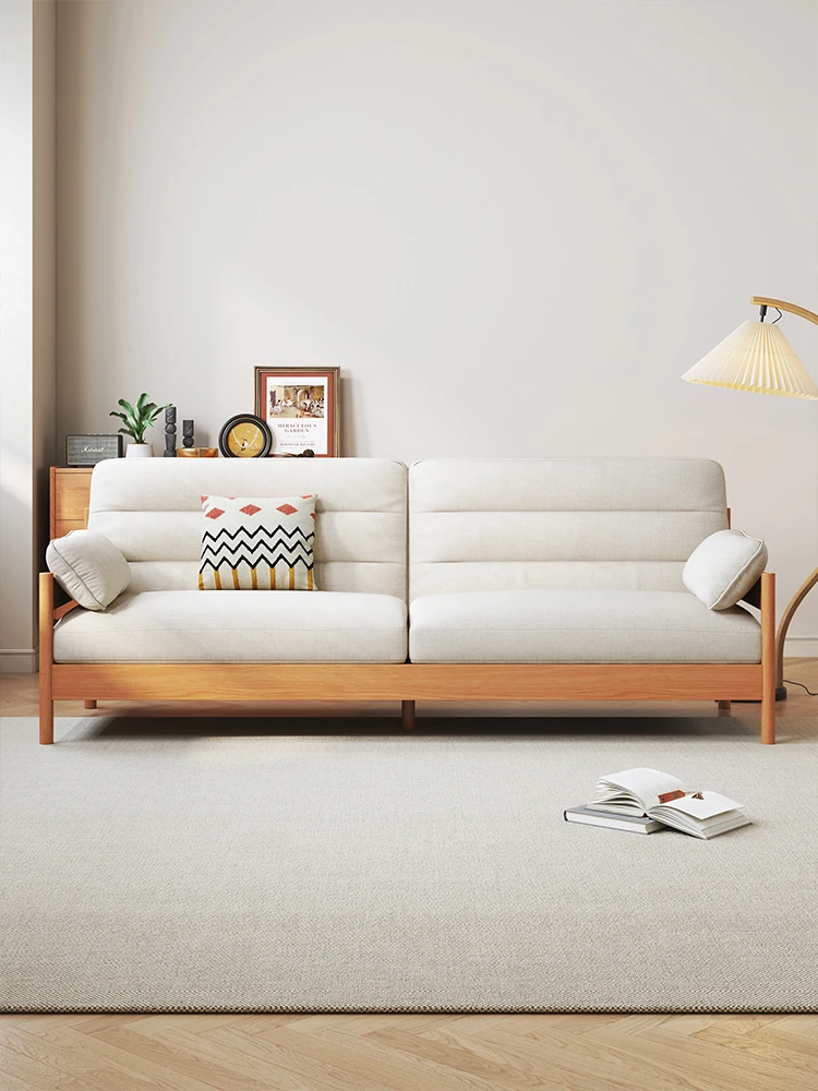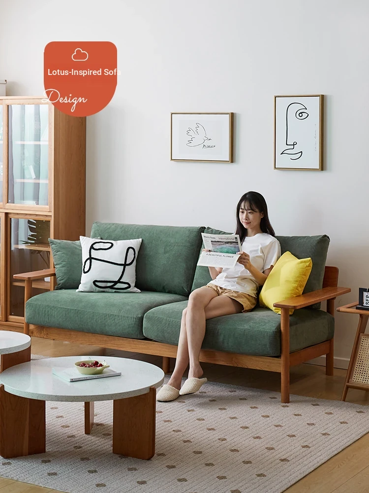 Title: Chic Cherry Wood Sofa - Nordic Style Solid Wood Fabric Sofa for Small Living Rooms, Perfect 3-Seater for Modern Homes