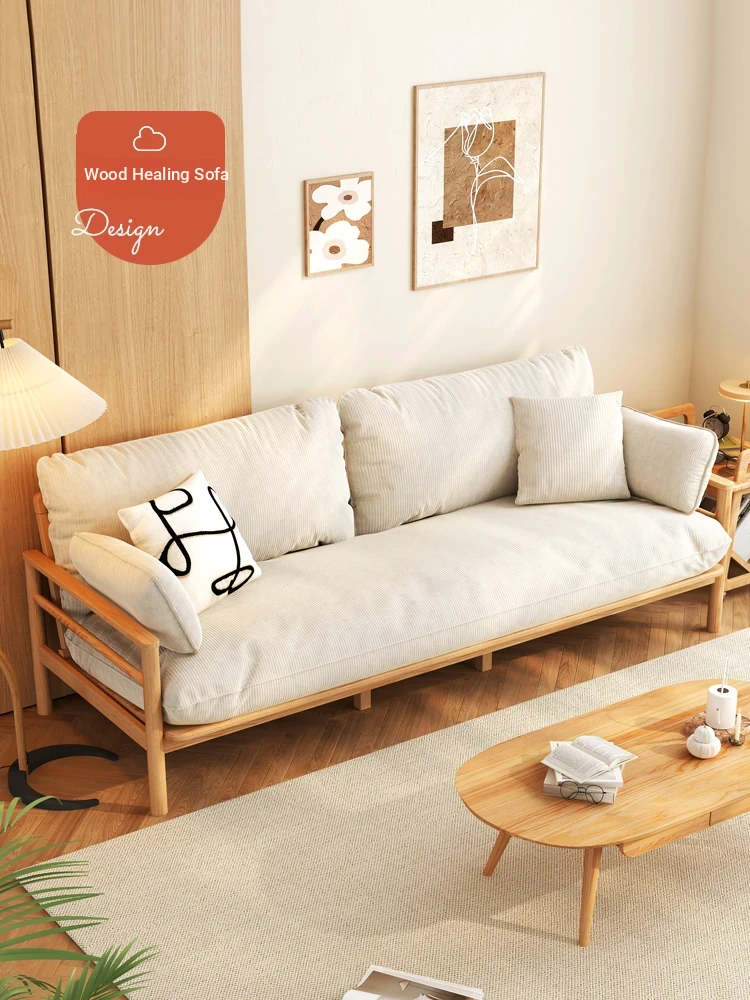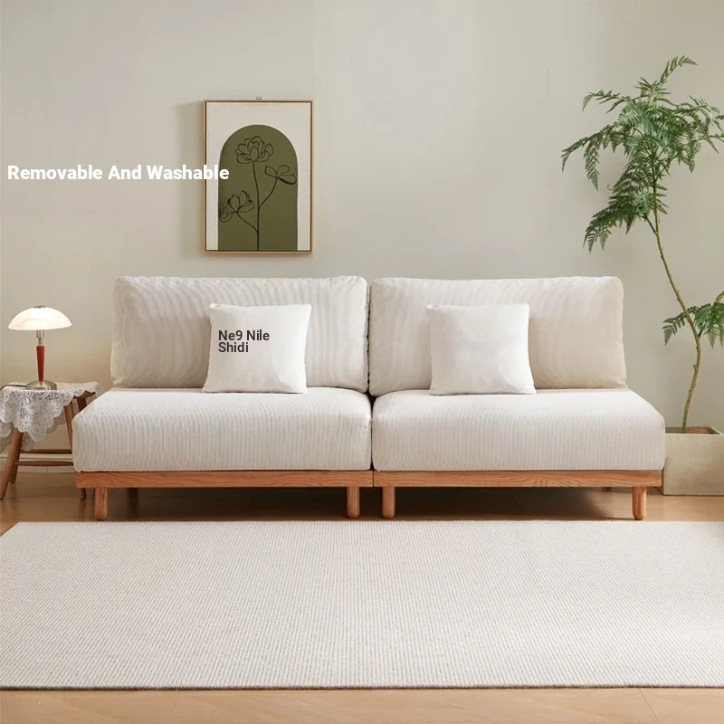 Japanese Solid Wood Sofa - Modern Nordic Design for Small Living Rooms, 3-Seater Corduroy with Removable Covers, Minimalist Style Original Wood Furniture