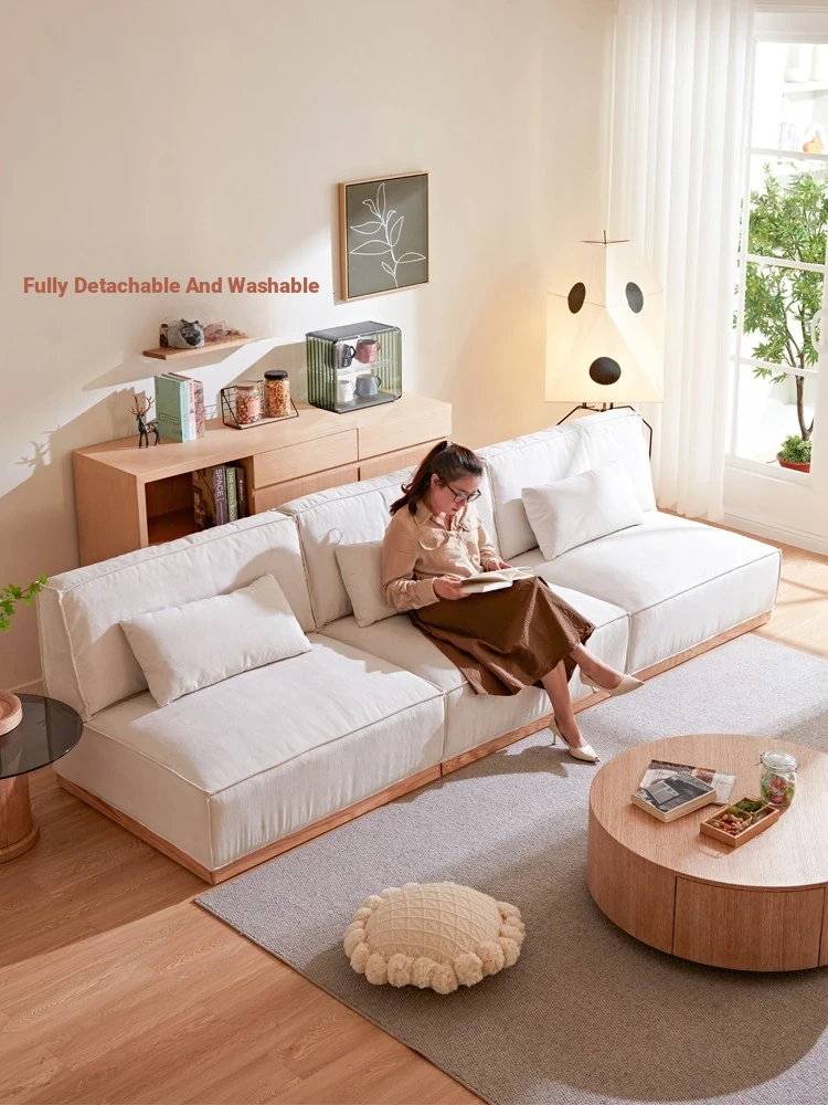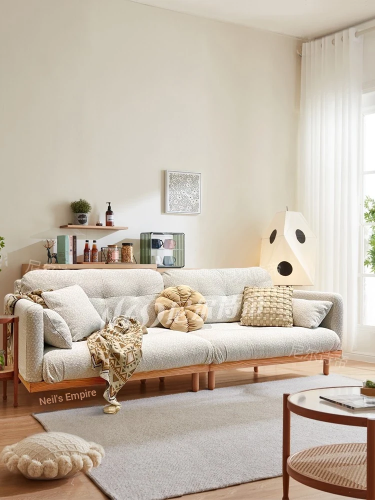 Title: Cozy Scandinavian Solid Wood Sofa - Minimalist Japanese Style Linen & Cotton Couch for Compact Living Rooms