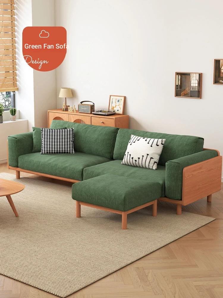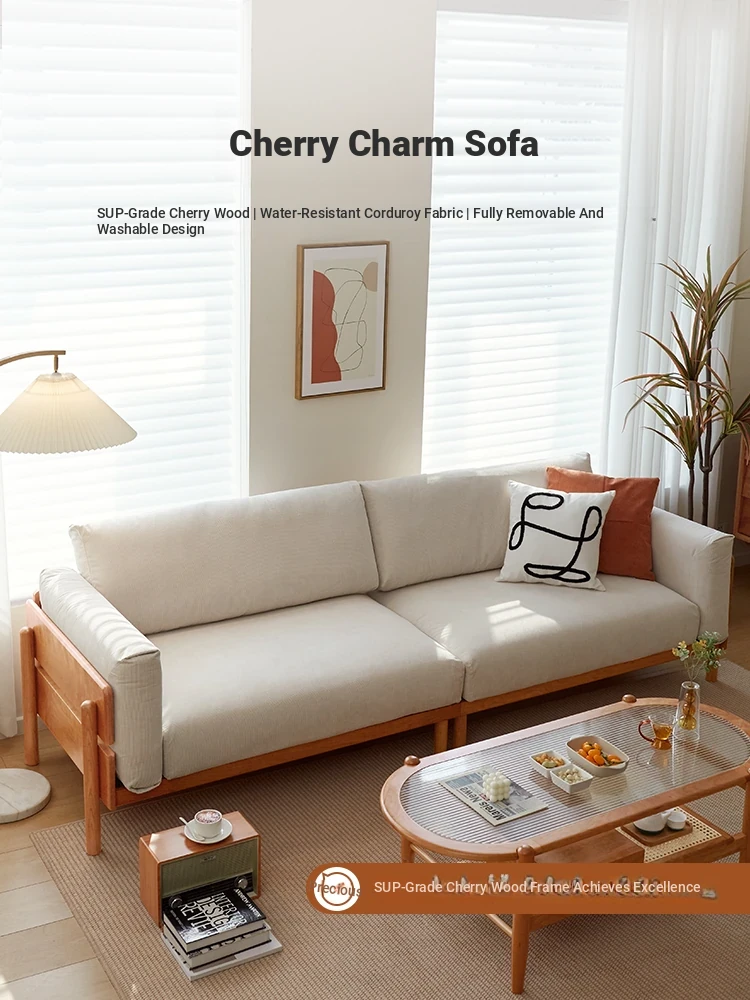 Title: Elegant Scandinavian Cherry Wood Sofa - Minimalist Japanese-Style Corduroy Fabric, Washable Covers for Ultimate Comfort, Perfect for Modern Living Rooms