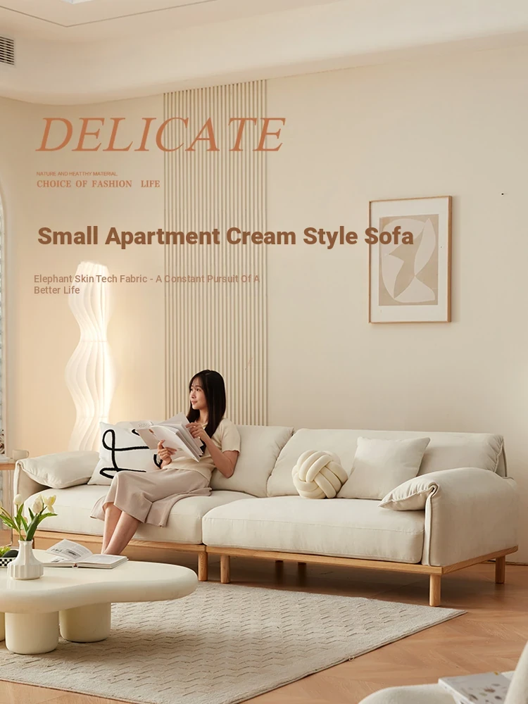 Nordic Solid Wood Cream Style Sofa - Compact Two-Seater Fabric Couch for Cozy Living Rooms