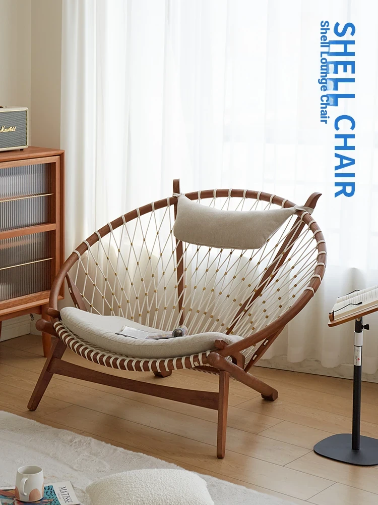 Nordic Solid Wood Lazy Sofa Chair - Stylish Woven Rope Design for Living Room, Patio & Balcony. Embrace Relaxation with Artistic Semi-Circular Lounger. Perfect for Outdoor & Indoor Comfort!