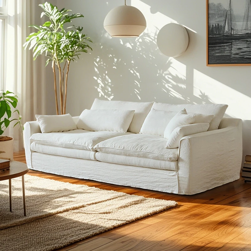 Wabi-Sabi Style Linen Sofa - Modern, Fully Removable Cotton-Linen Blend, Ultra-Wide & Deep-Seated, Embrace Comfort in Your Living Room