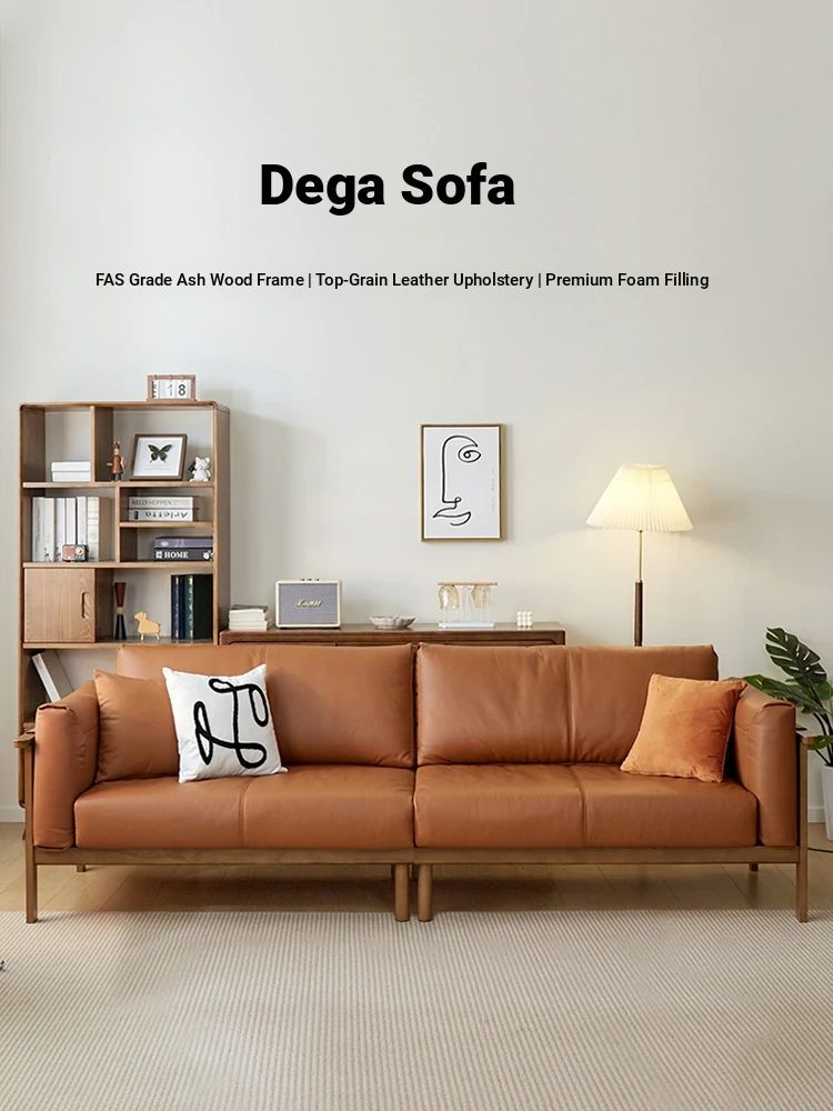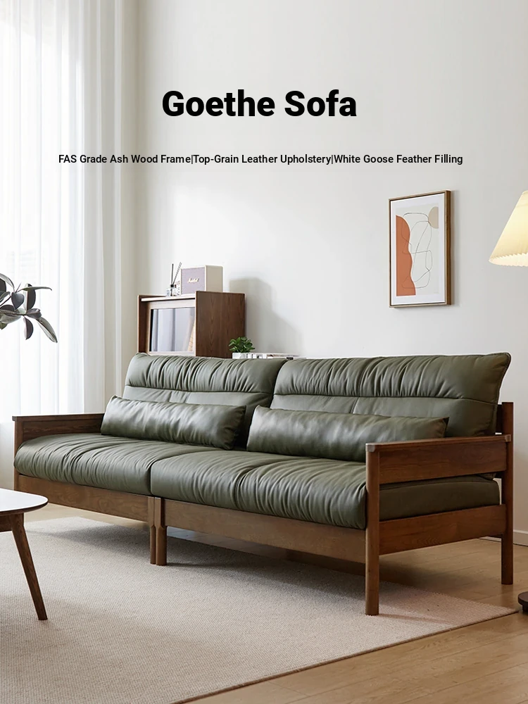 Sumpu Japanese Cherry Wood Solid Sofa - Minimalist Nordic Design with Genuine Top-Grain Leather for a Natural Living Room Ambience