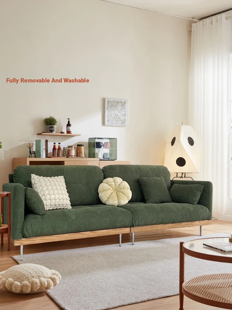 Nordic Cherry Wood Sofa - Modern Minimalist 3-Seater for Living Room, Japanese Solid Wood Design, Corduroy Upholstery, Fully Removable Covers - Timeless Elegance Meets Easy Maintenance