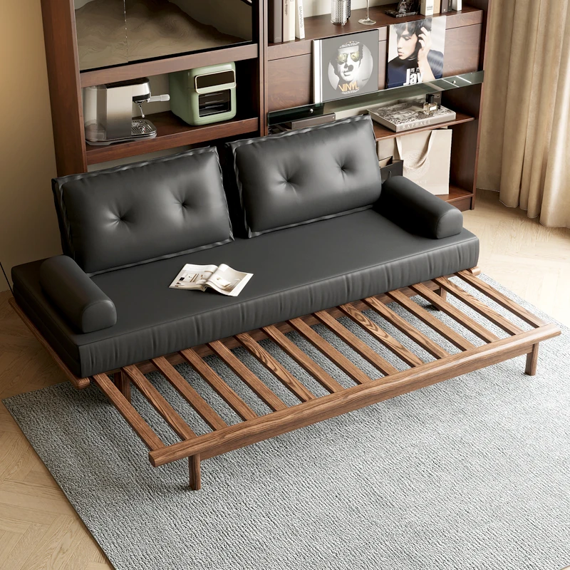 Japanese Solid Wood Sofa Bed for Small Spaces - Versatile Living Room Furniture with Reclining Function, Stylish Tech Fabric Design, Perfect for Modern Homes