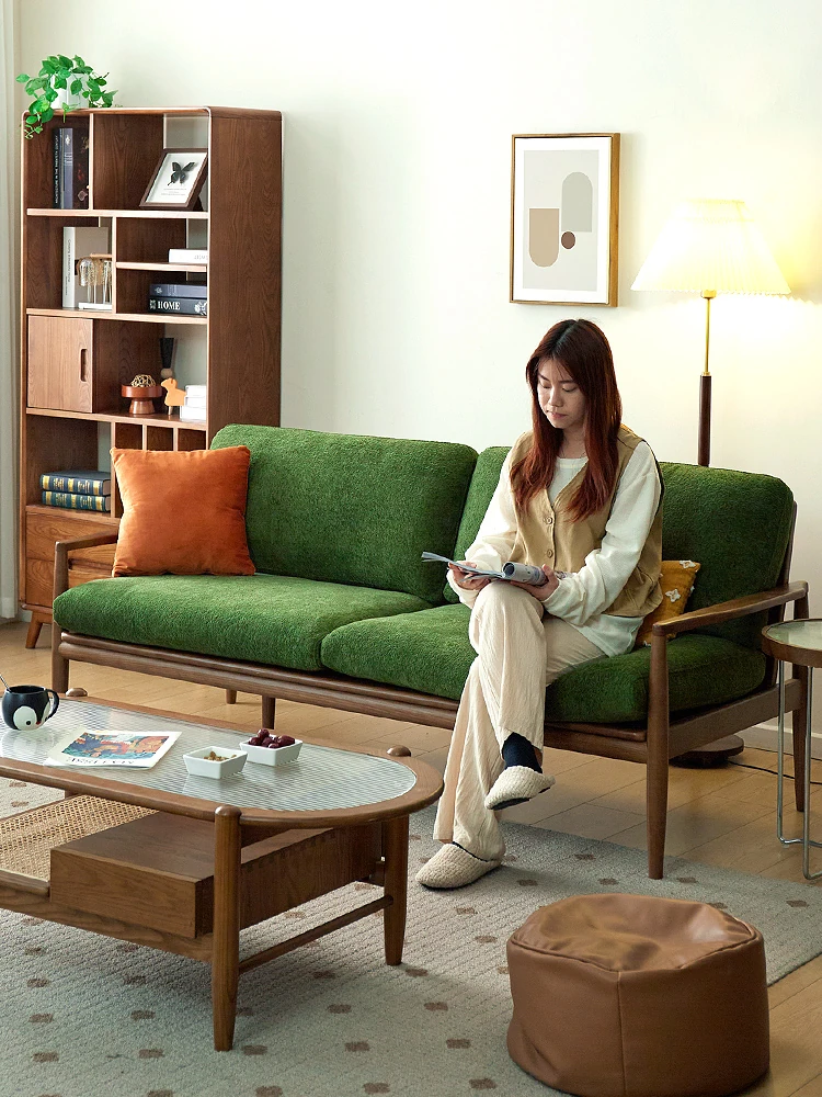 Vintage Nordic Solid Wood Sofa - Versatile Green Fabric Sofa for Small Spaces, Perfect for All Seasons