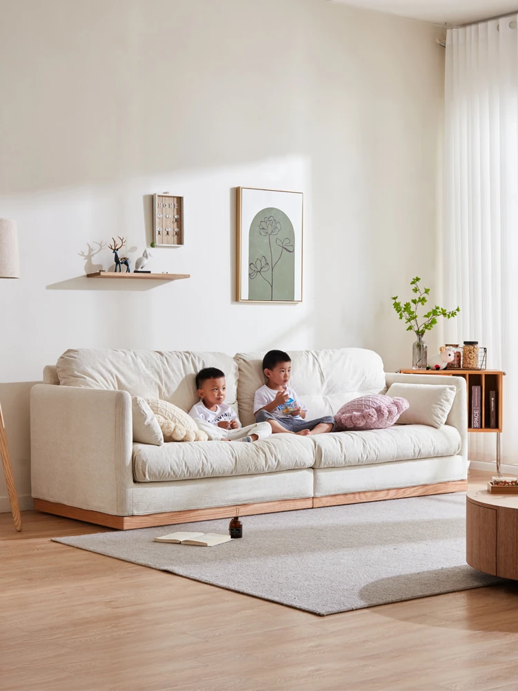 Wabi-Sabi Cloud Sofa: Washable Natural Corduroy & Linen, Solid Wood Frame, Pet-Friendly, Perfect for Cozy Living Spaces
