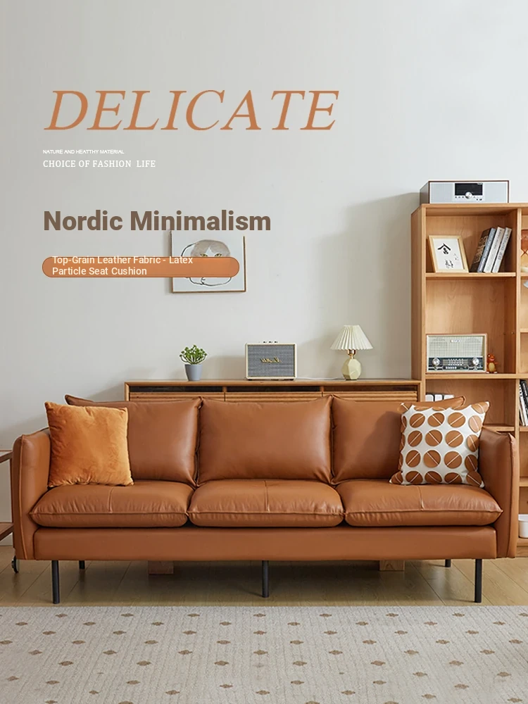 Genuine Leather Sofa for Small Spaces - Modern Nordic Design 3-Seater with Latex Leather | Stylish Designer Furniture for Your Living Room