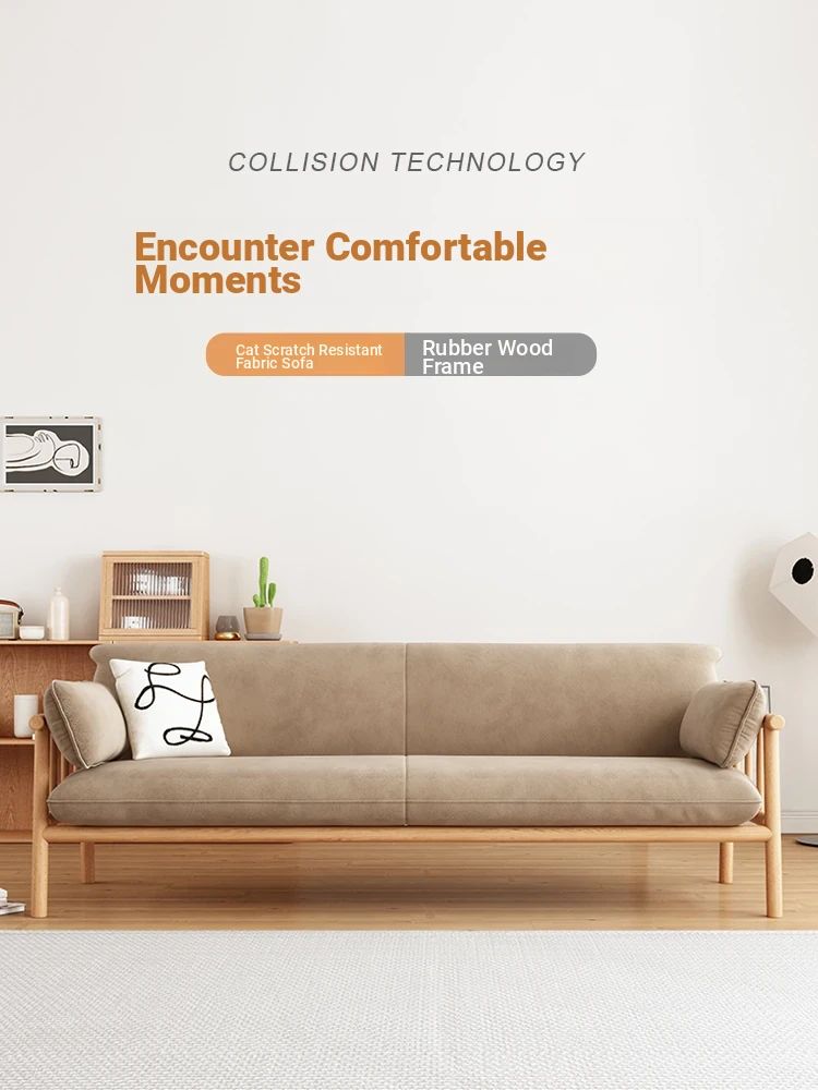 Japanese Fabric Sofa - Compact Modern Nordic Style 3-Seater with Cat Paw Design, Solid Wood Frame, Perfect for Small Living Rooms