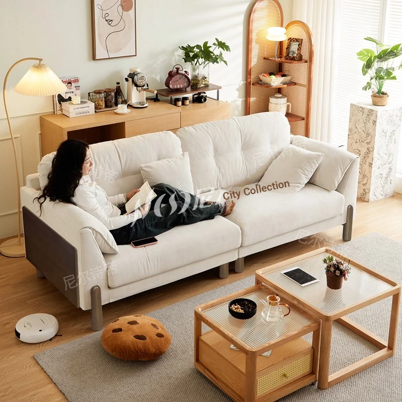 Japanese Minimalist Solid Wood Sofa - Cozy Cloud Fabric for Small Living Rooms, Nordic High Back Design
