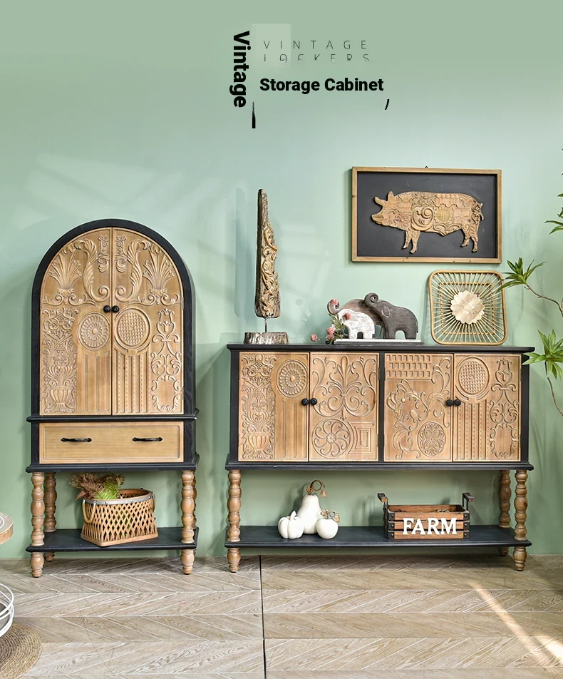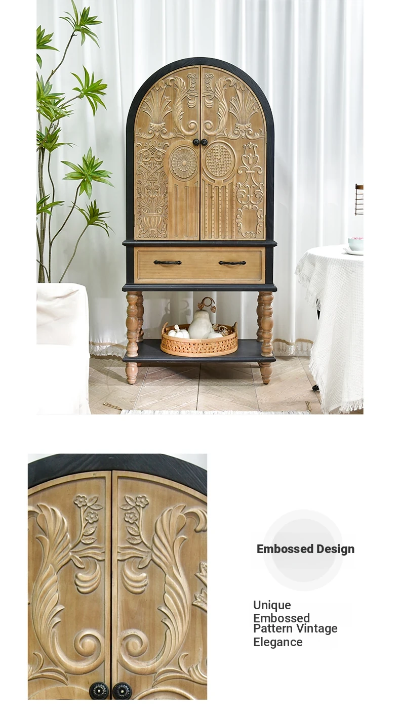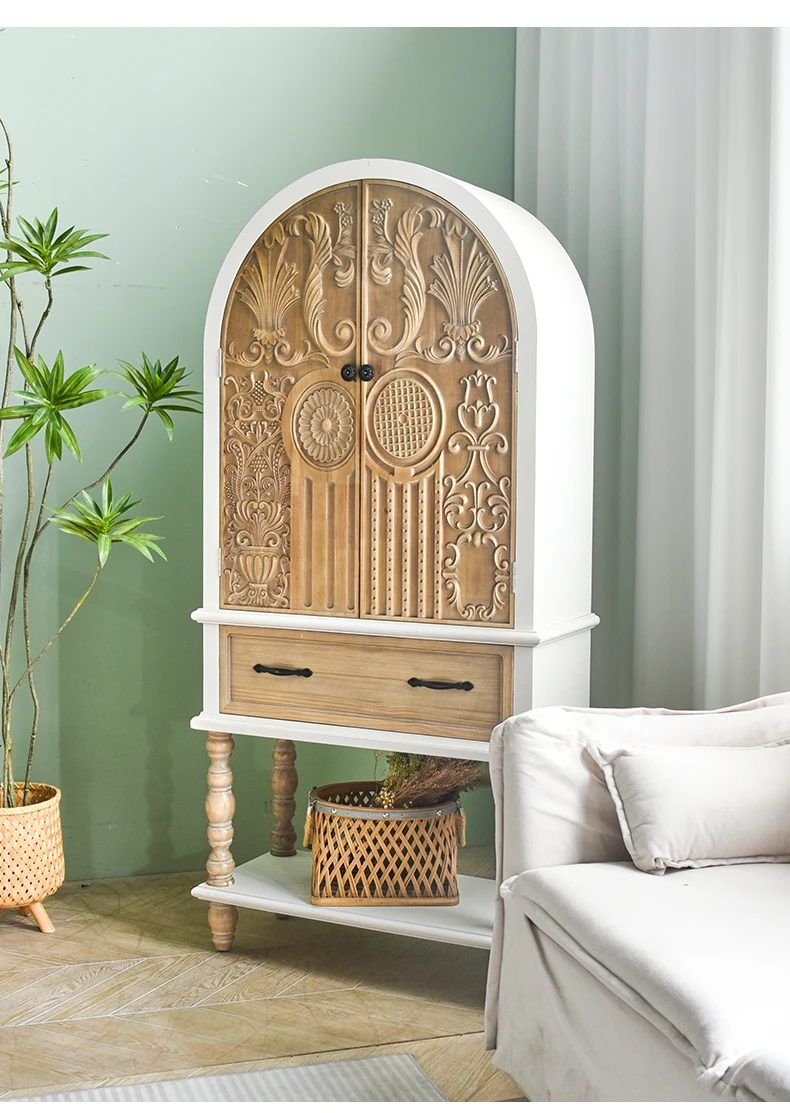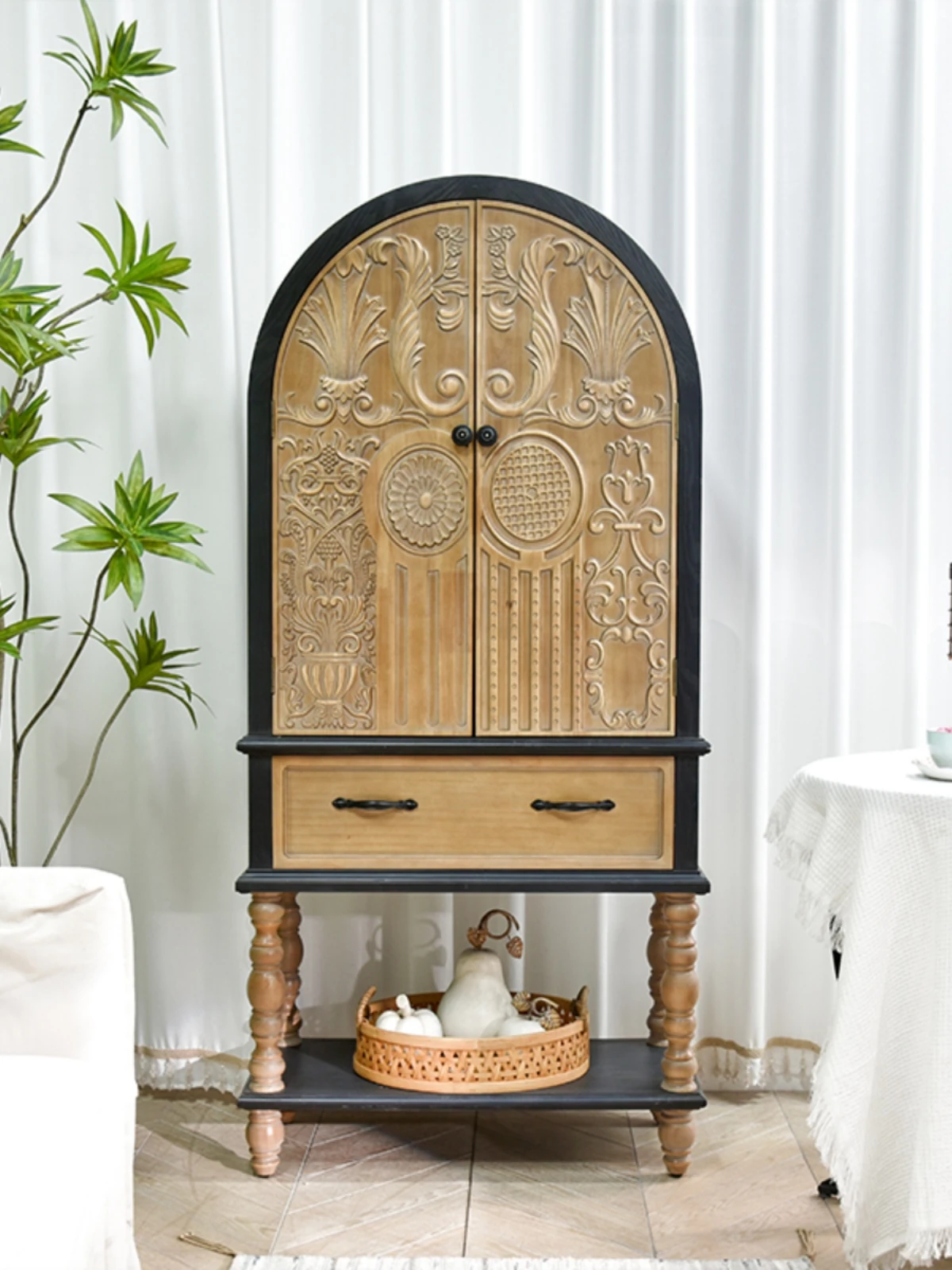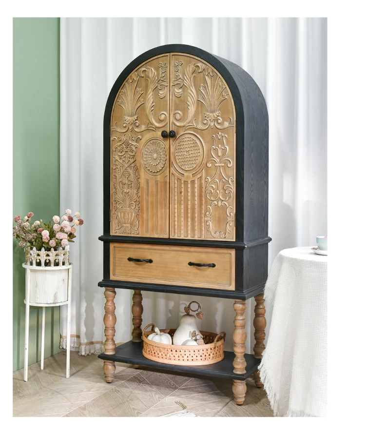 French Vintage Country-Style Carved Arch Display Cabinet: Elegant Storage Solution for Living Room & Dining - Bookcase, High Cabinet, and Sideboard