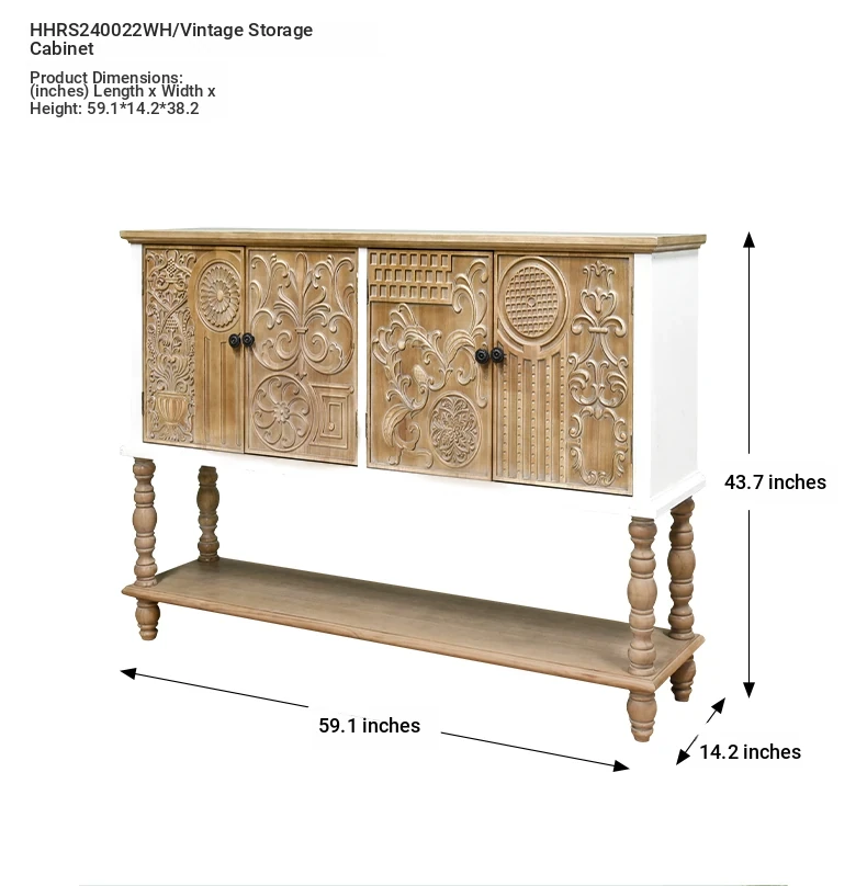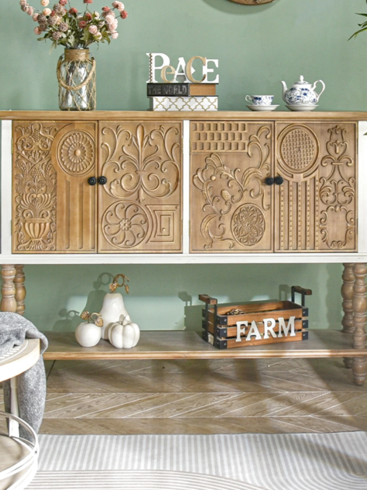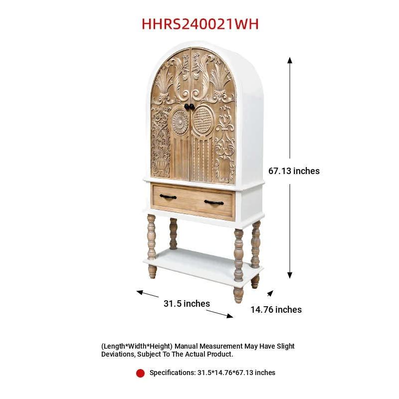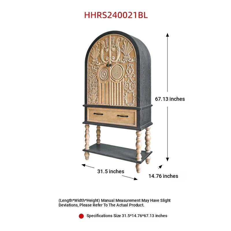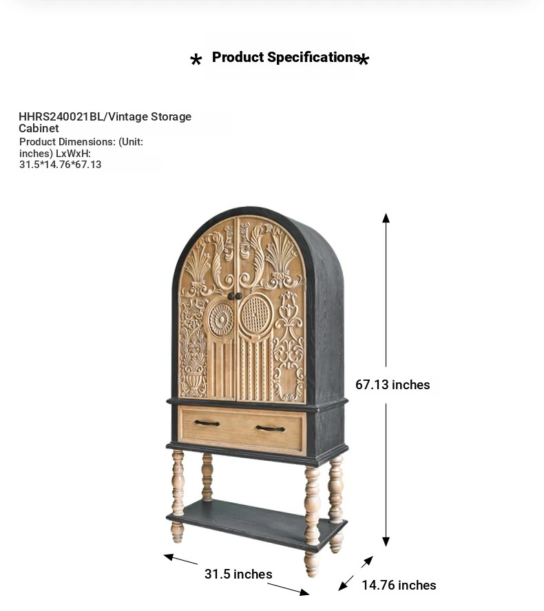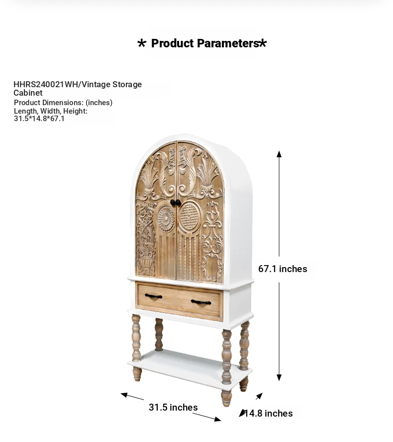 French Vintage Country-Style Carved Arch Display Cabinet: Elegant Storage Solution for Living Room & Dining - Bookcase, High Cabinet, and Sideboard