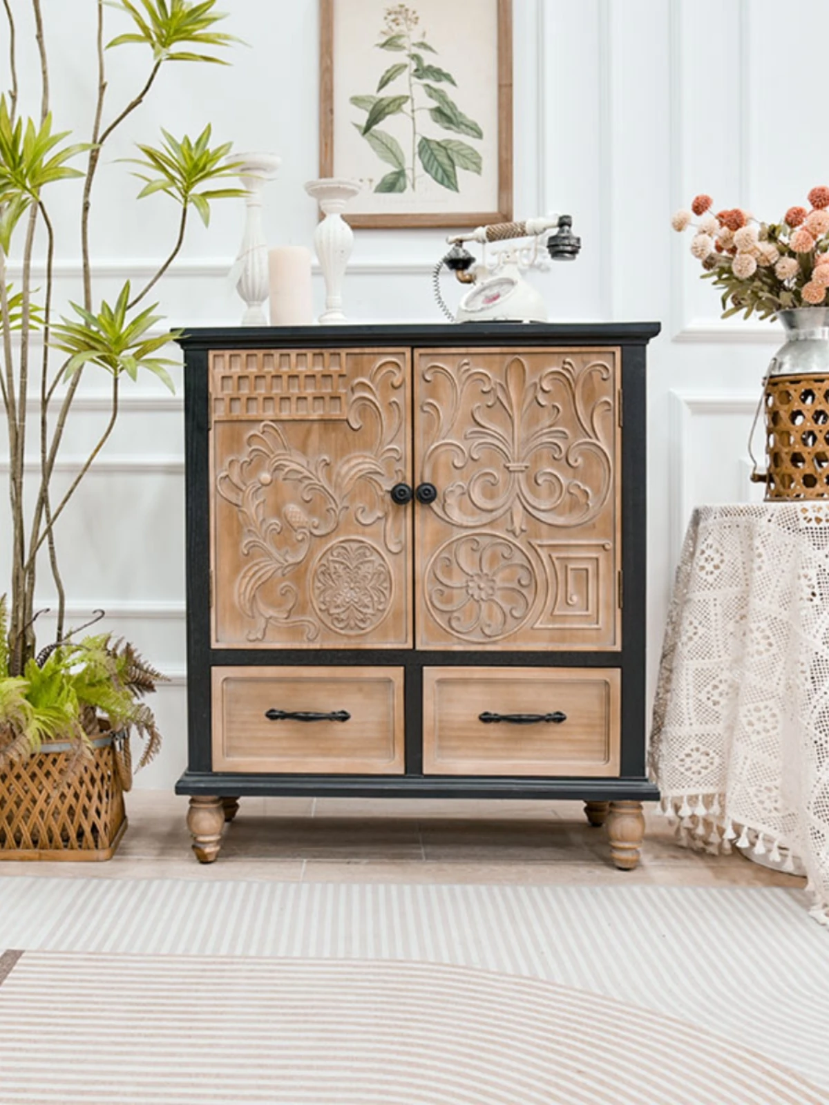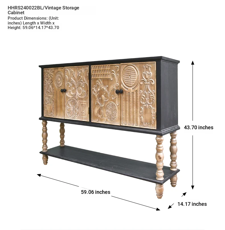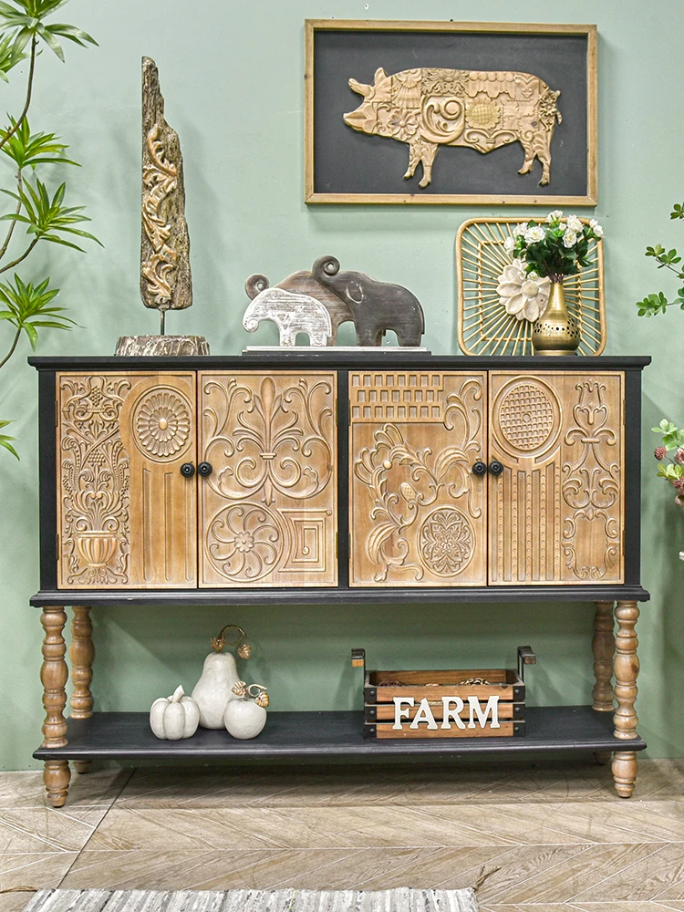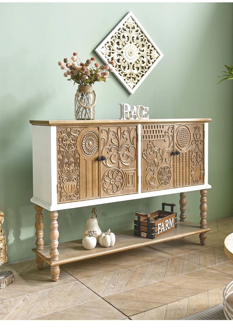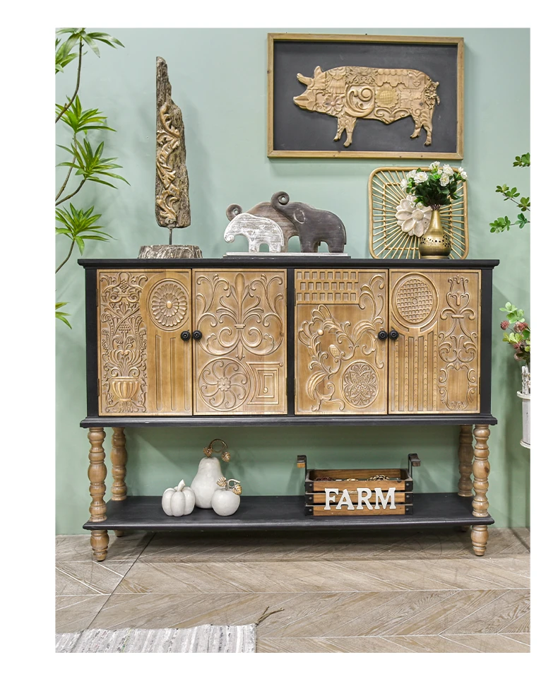 French Vintage Country-Style Carved Arch Display Cabinet: Elegant Storage Solution for Living Room & Dining - Bookcase, High Cabinet, and Sideboard