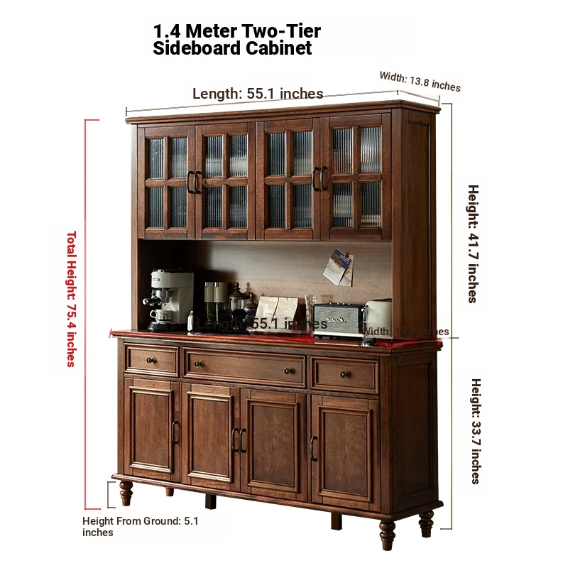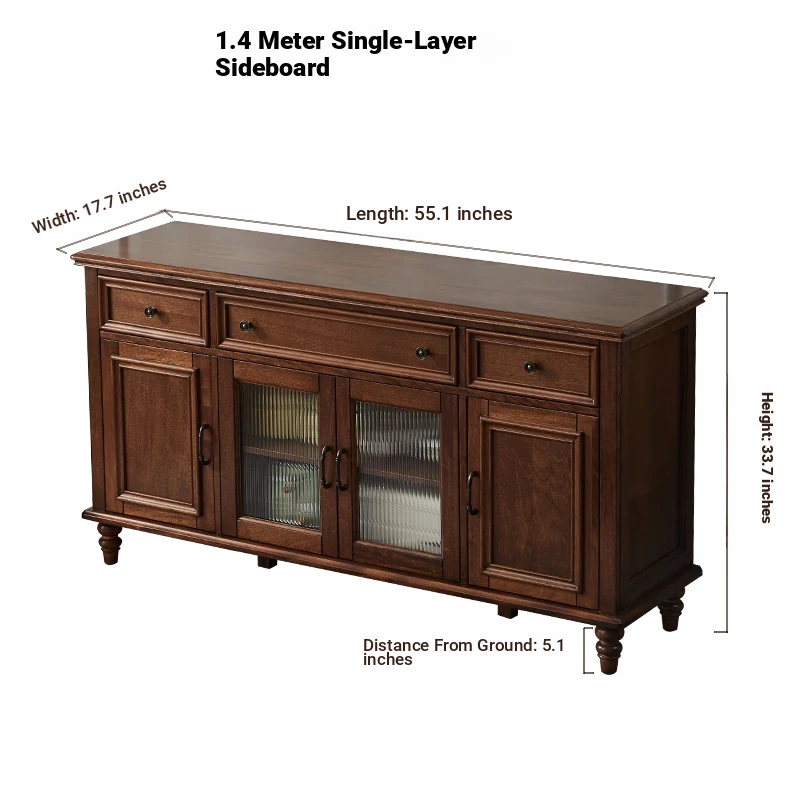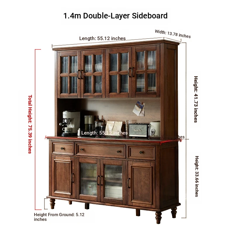 Double-layer sideboard 55.12 ins (glass door) new walnut color four doors