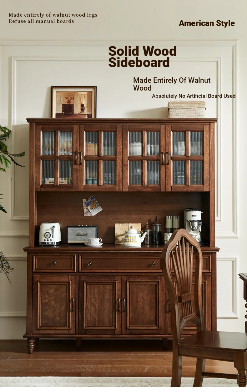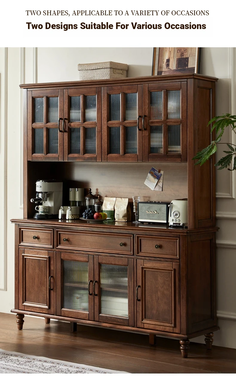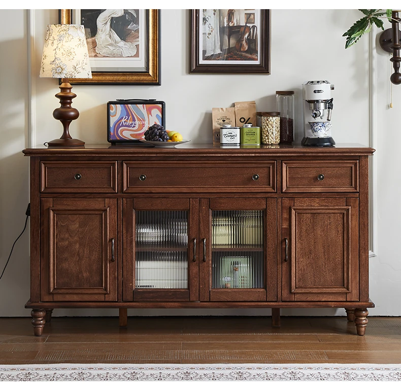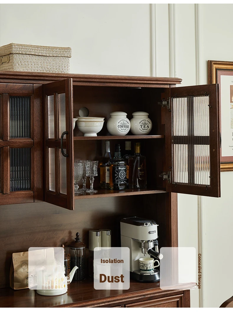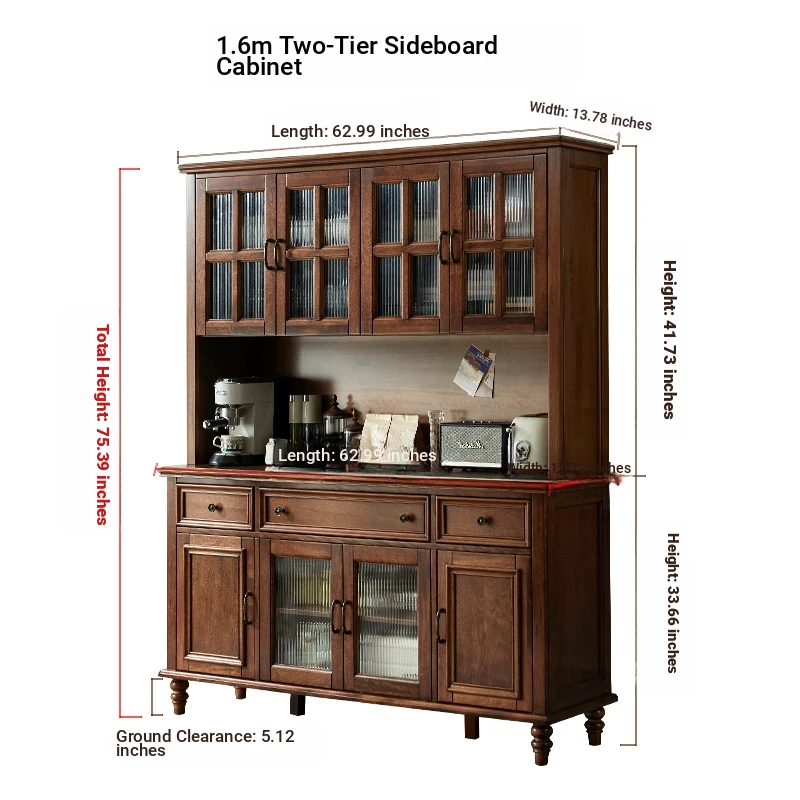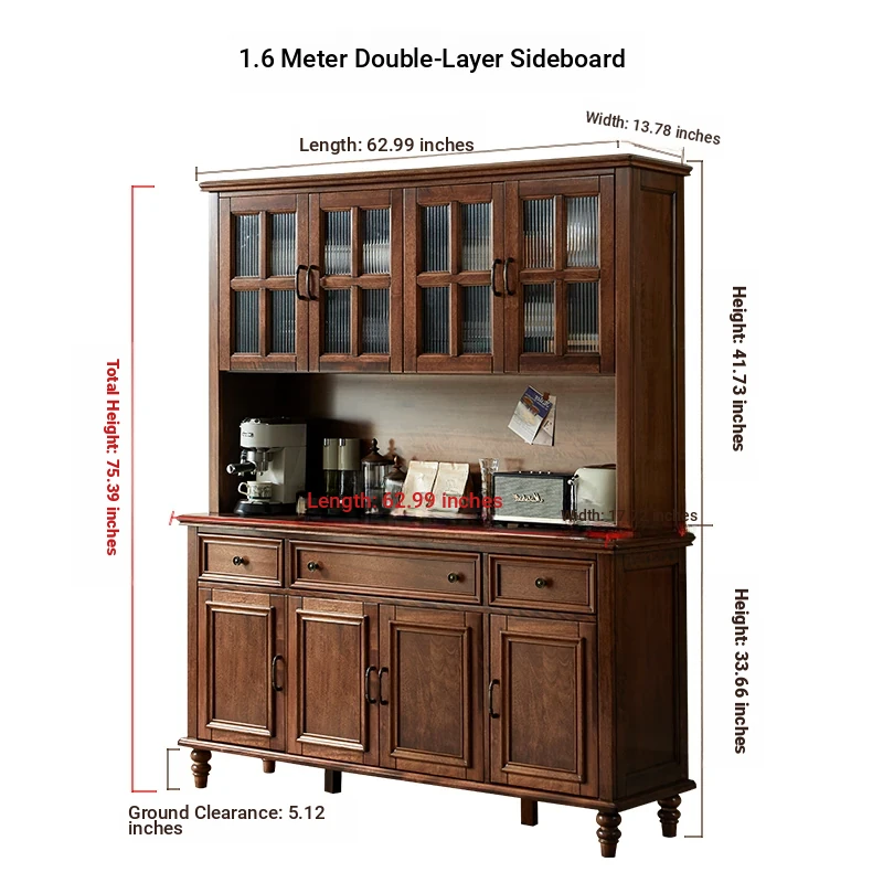 Double-layer sideboard 62.99 ins (glass door) new walnut color four doors