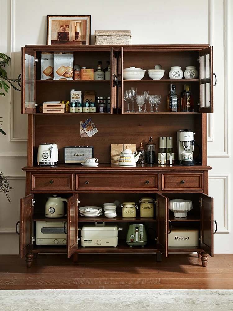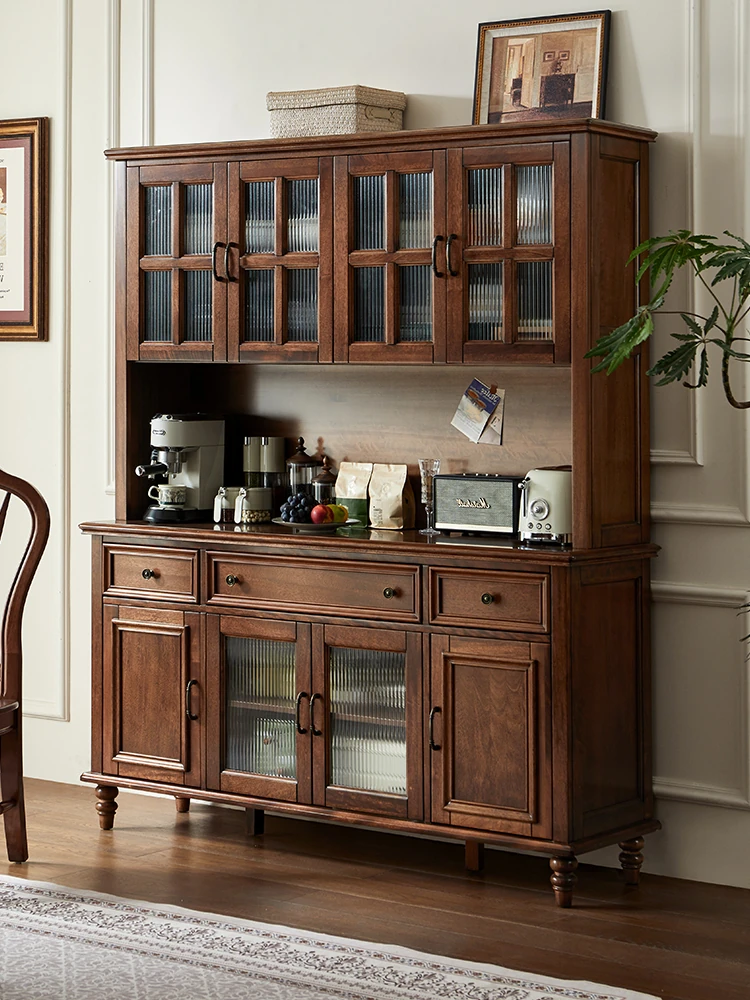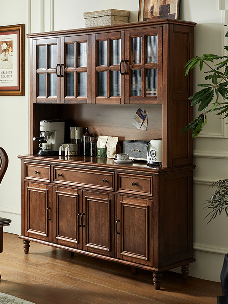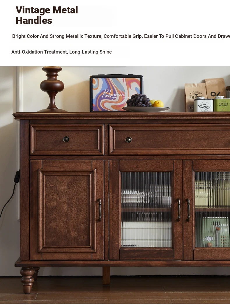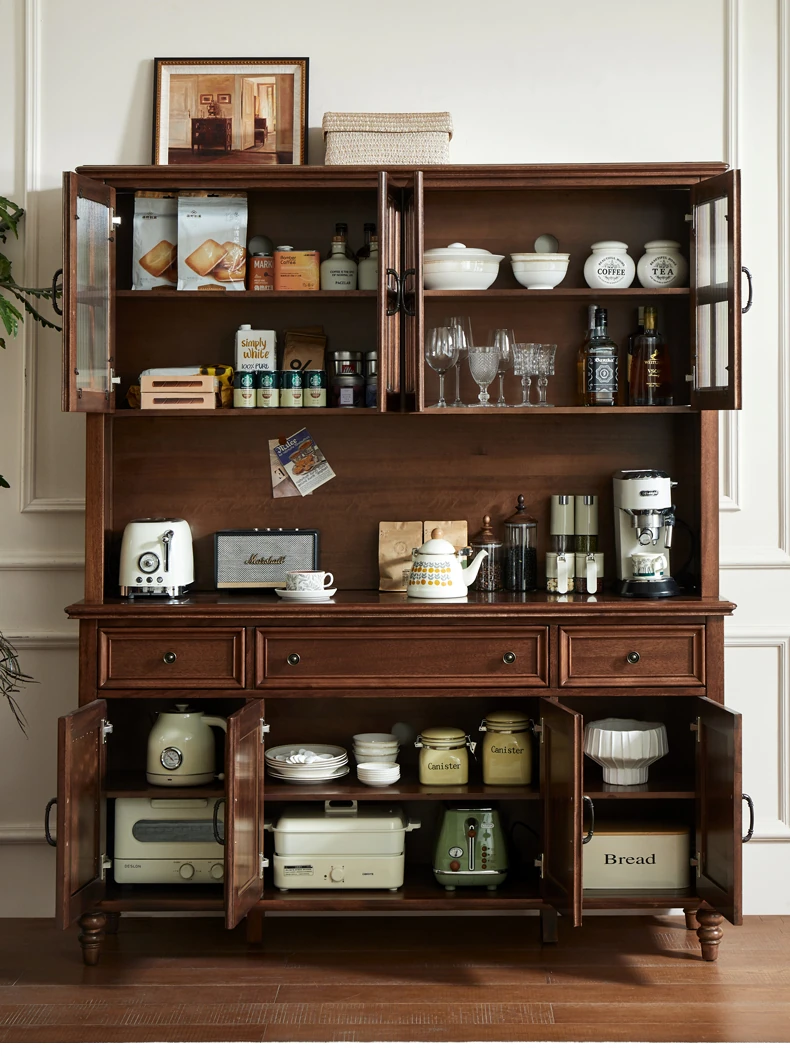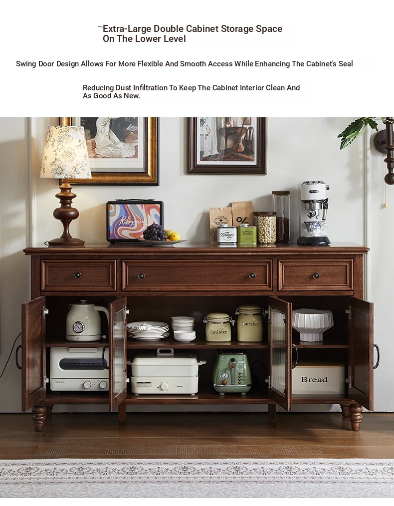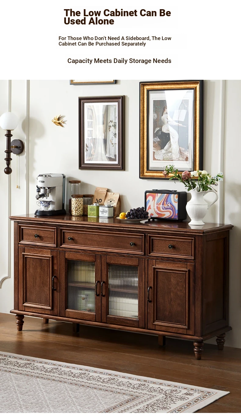 Double-layer sideboard 62.99 ins (glass door) new walnut color four doors