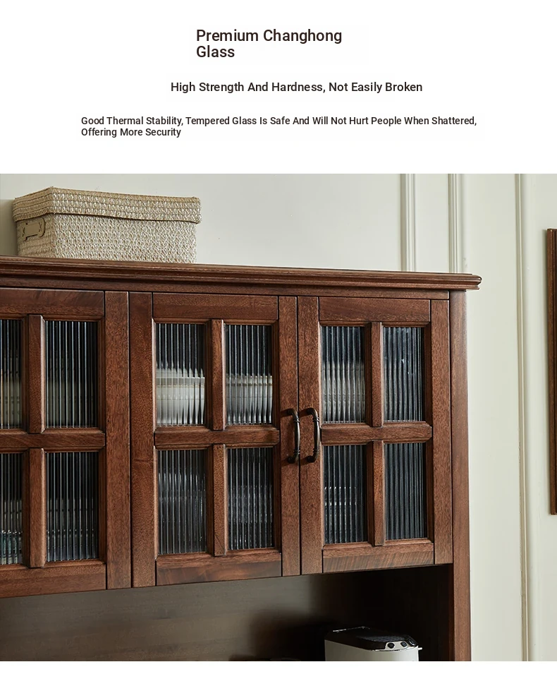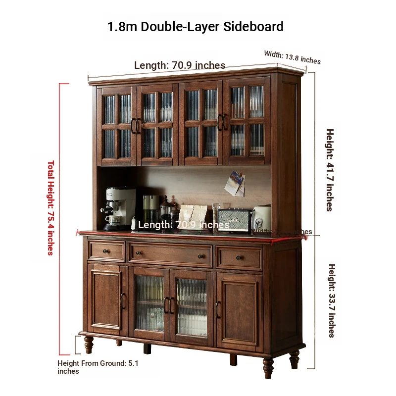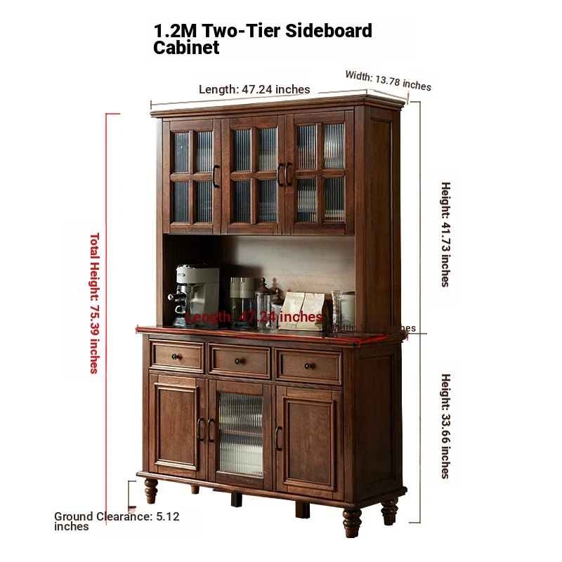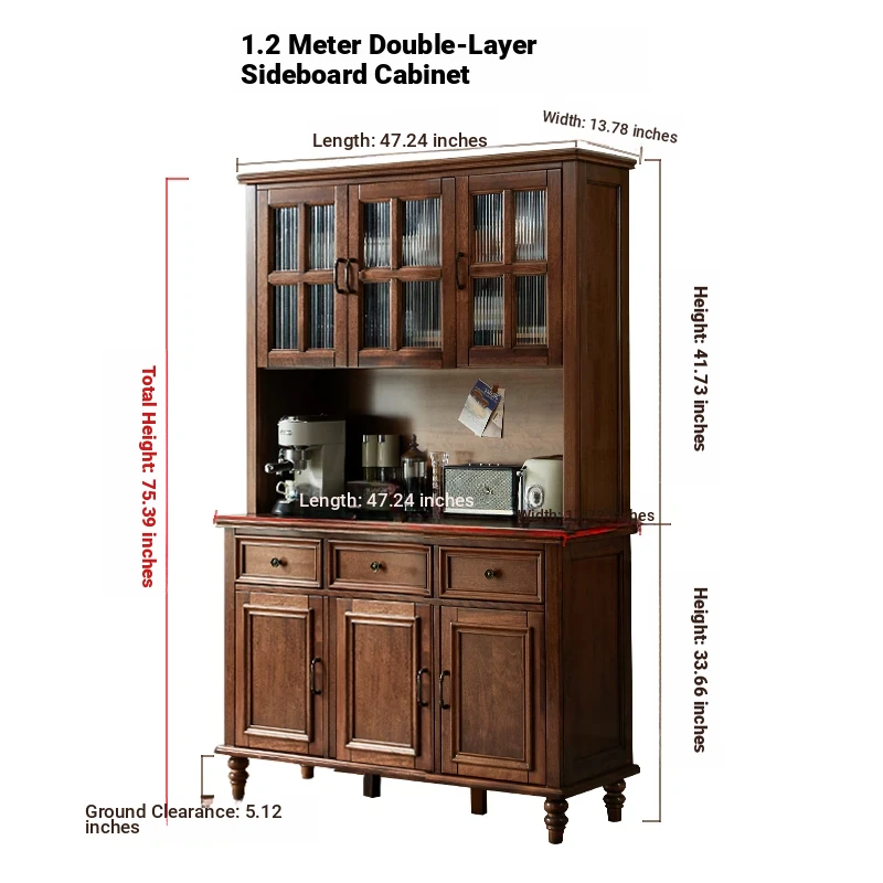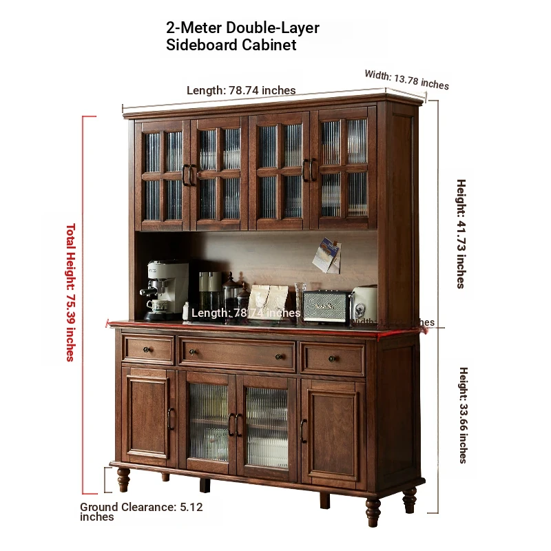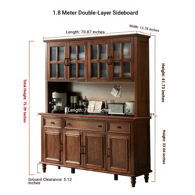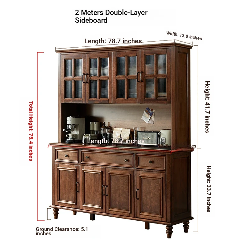 Double-layer sideboard 78.74 in (glass door) new walnut color four doors