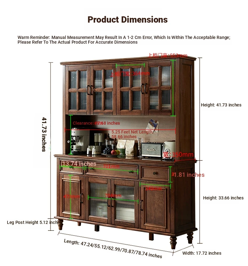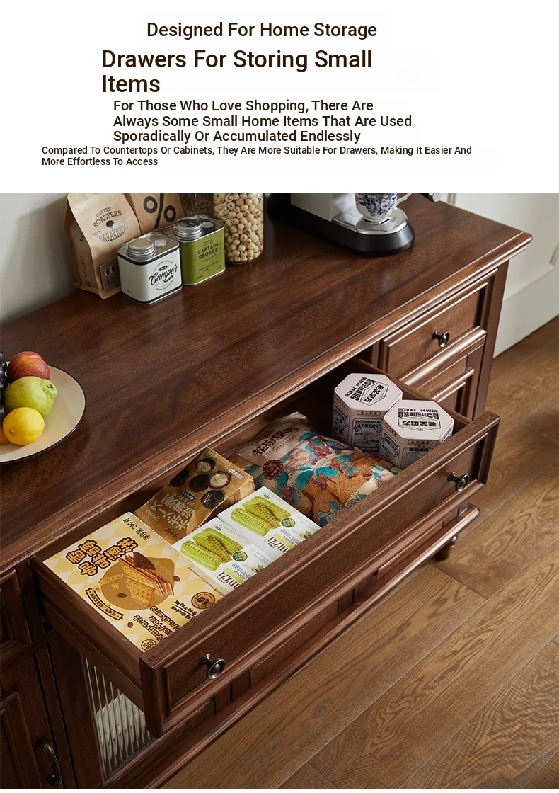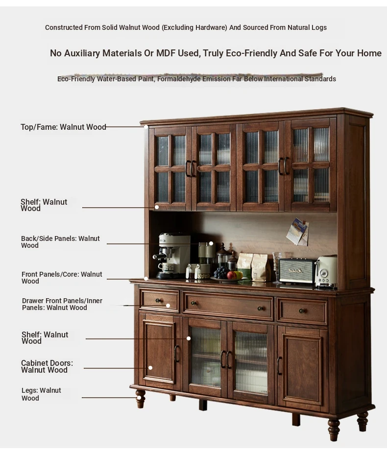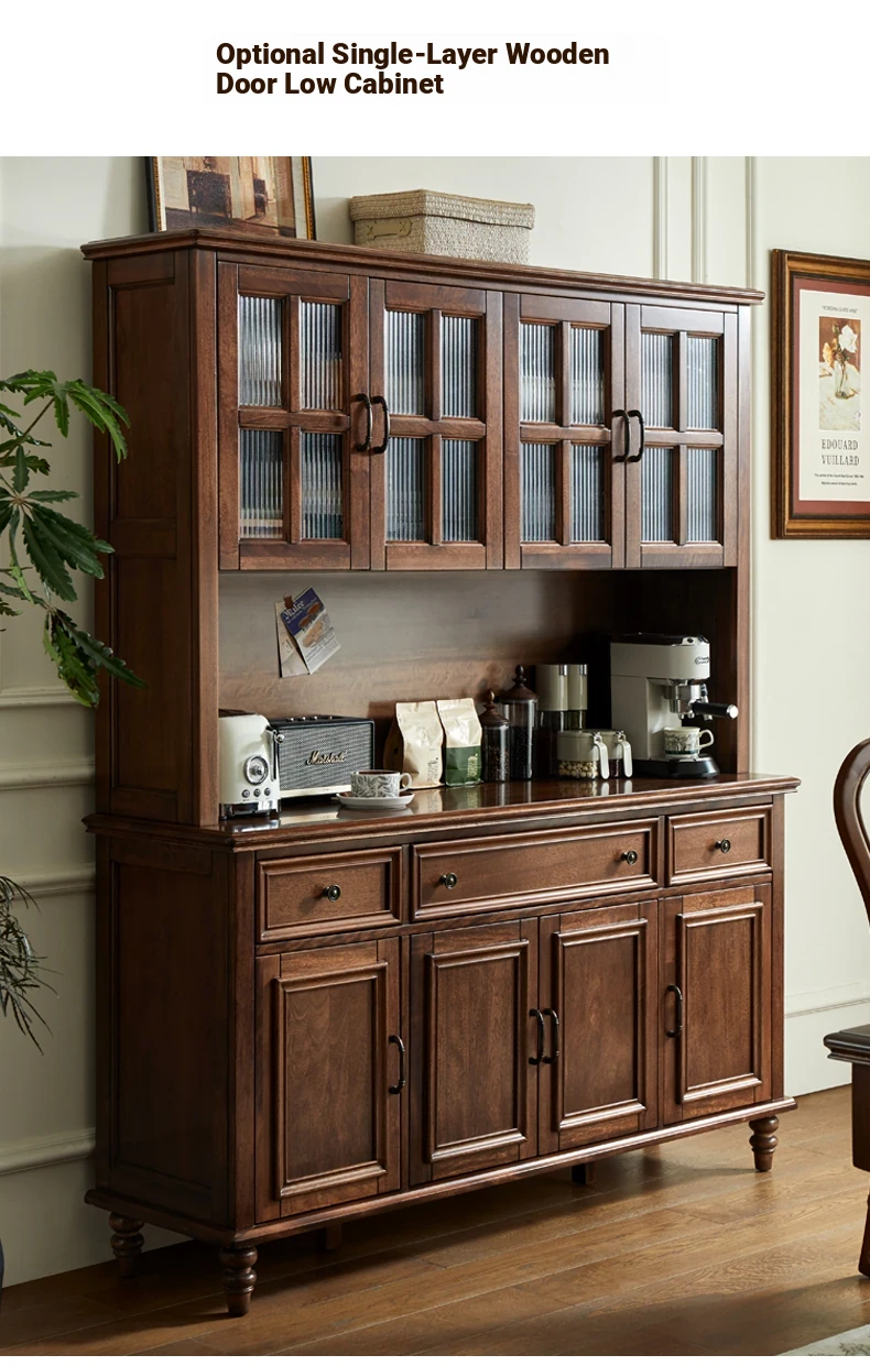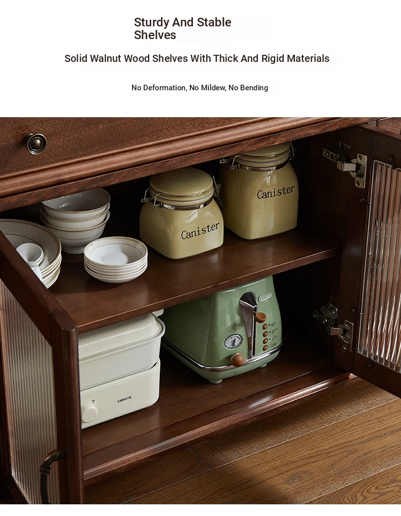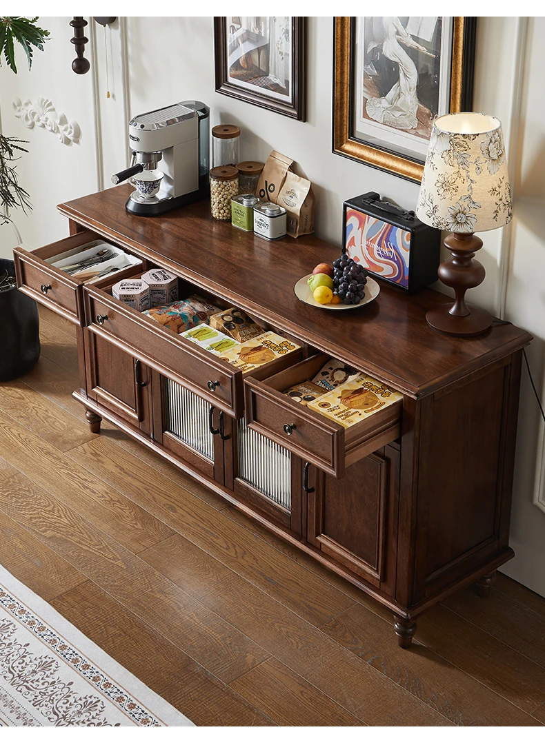 Double-layer sideboard 78.74 in (glass door) new walnut color four doors