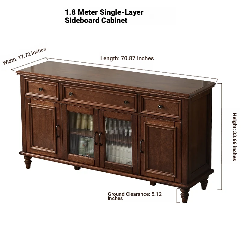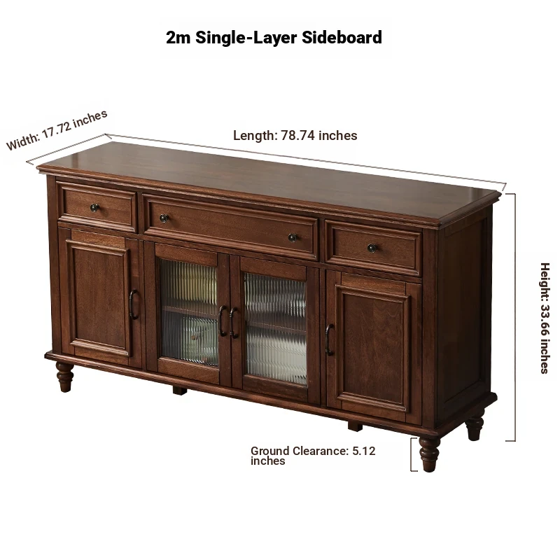 Single-layer sideboard 78.74 in (glass door) new walnut color four doors