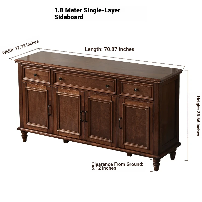 Single-layer sideboard 70.87 ins (wooden door) new walnut four doors