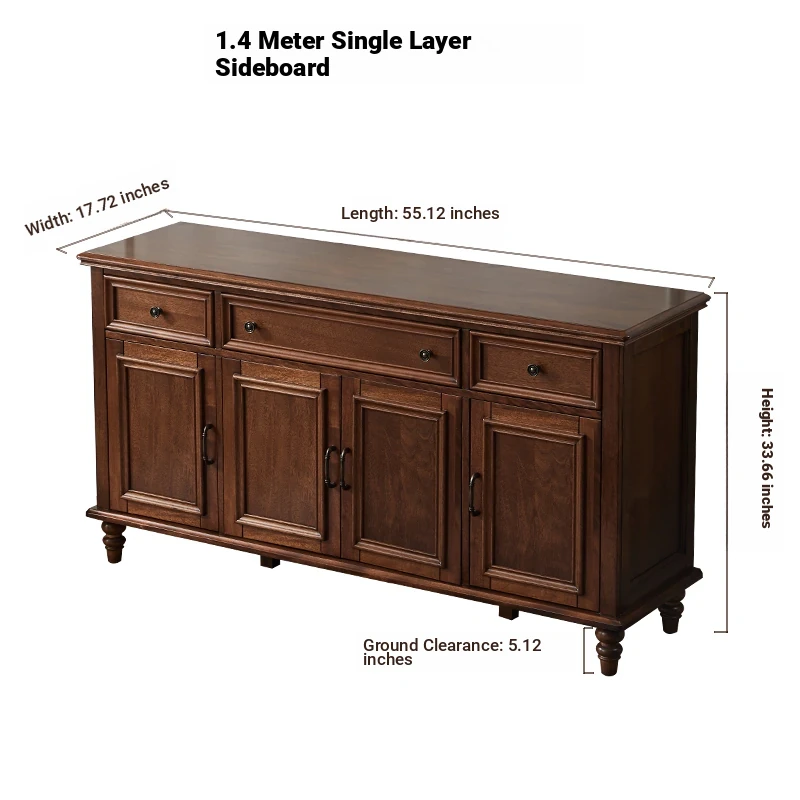 Double-layer sideboard 55.12 in (wooden door) new walnut four doors