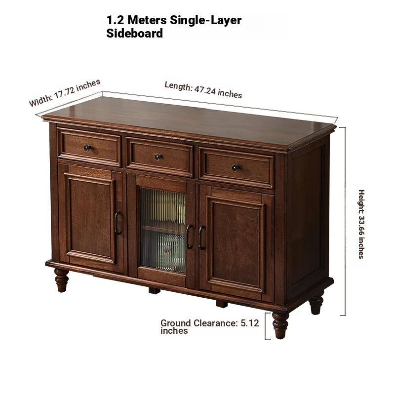 Double-layer sideboard 47.24 in (wooden door) new walnut color three doors