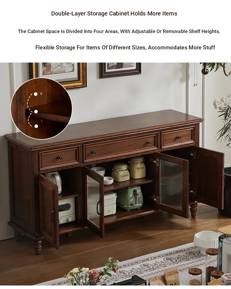 Double-layer sideboard 62.99 in (wooden door) new walnut four doors