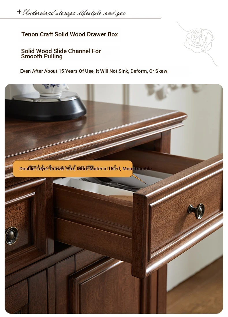 Double-layer sideboard 78.74 in (wooden door) new walnut color four doors