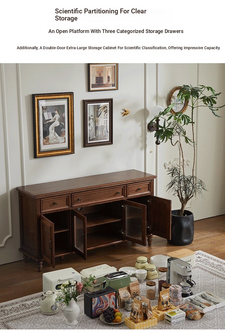 Single-layer sideboard 78.74 in (wooden door) new walnut color four doors
