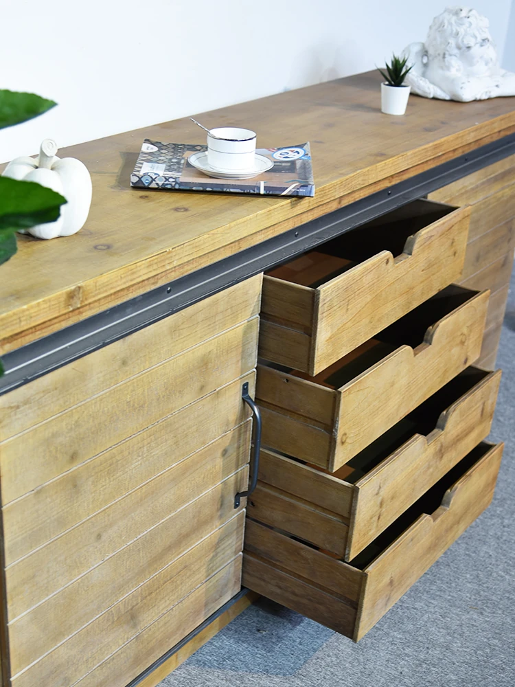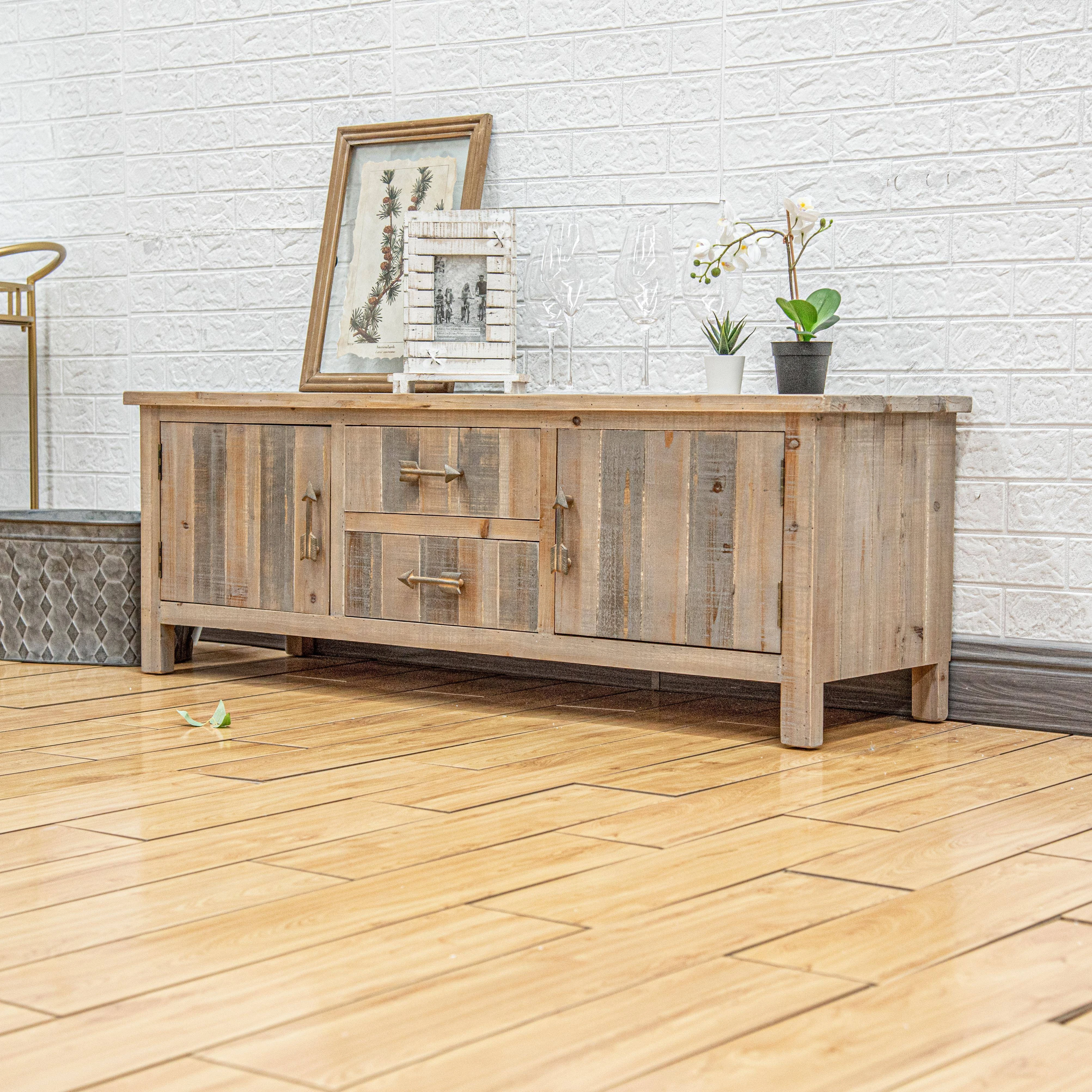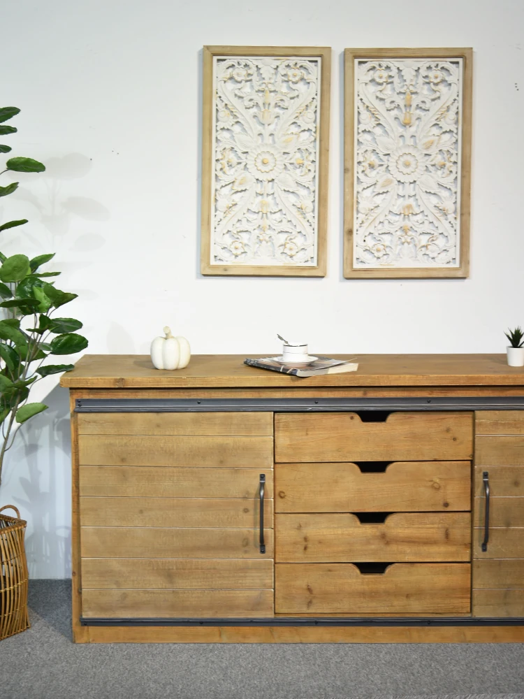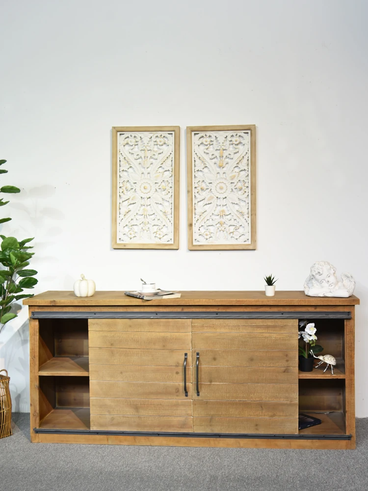 Translation: Solid Wood TV Stand - Modern Industrial Design for Living Room, 2023 New Vintage-Inspired High-End Luxury Combo