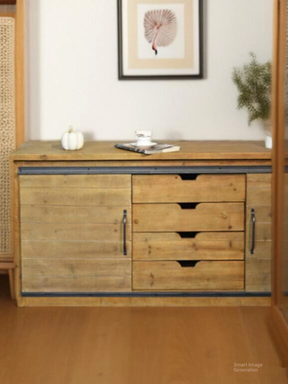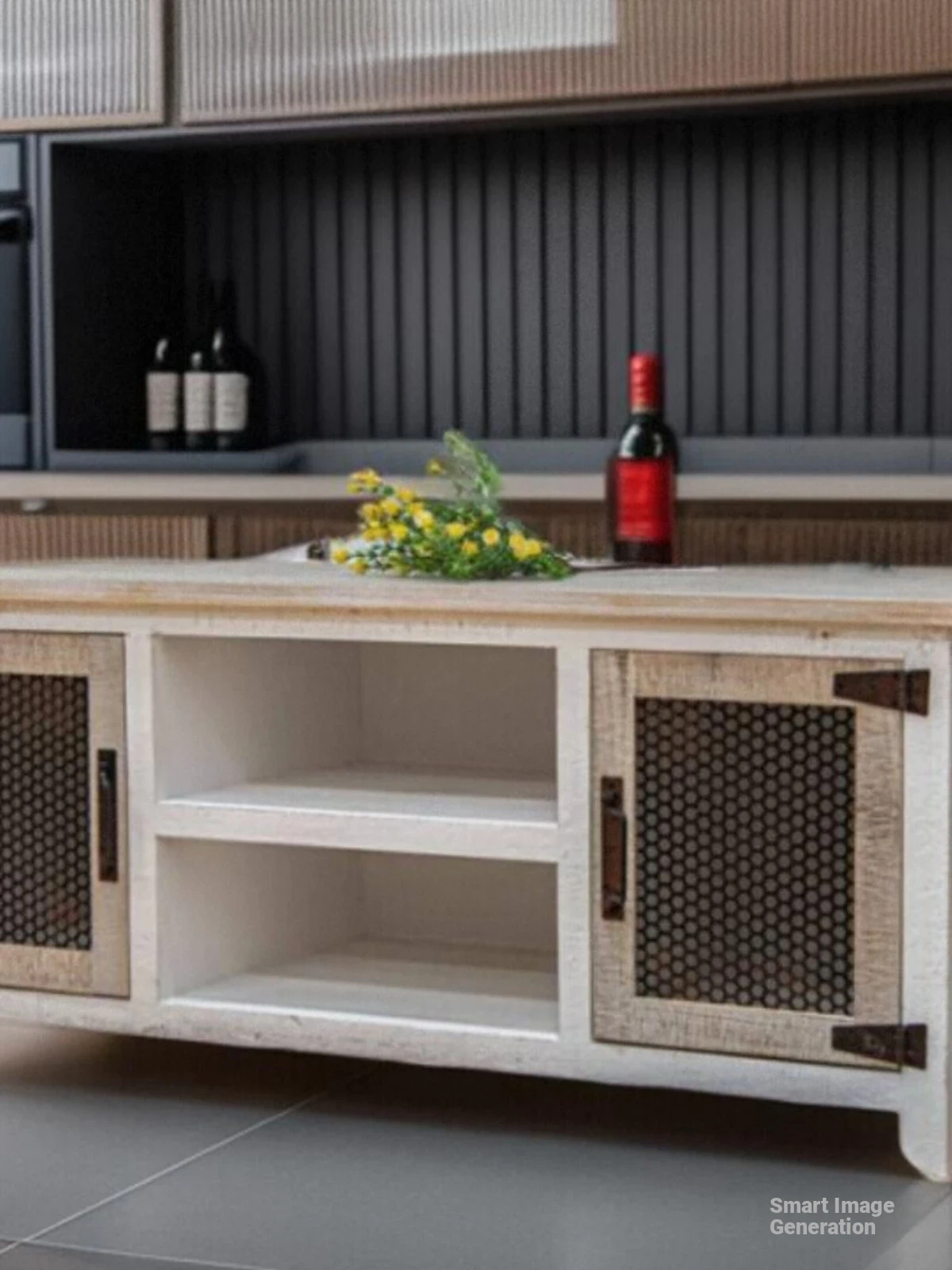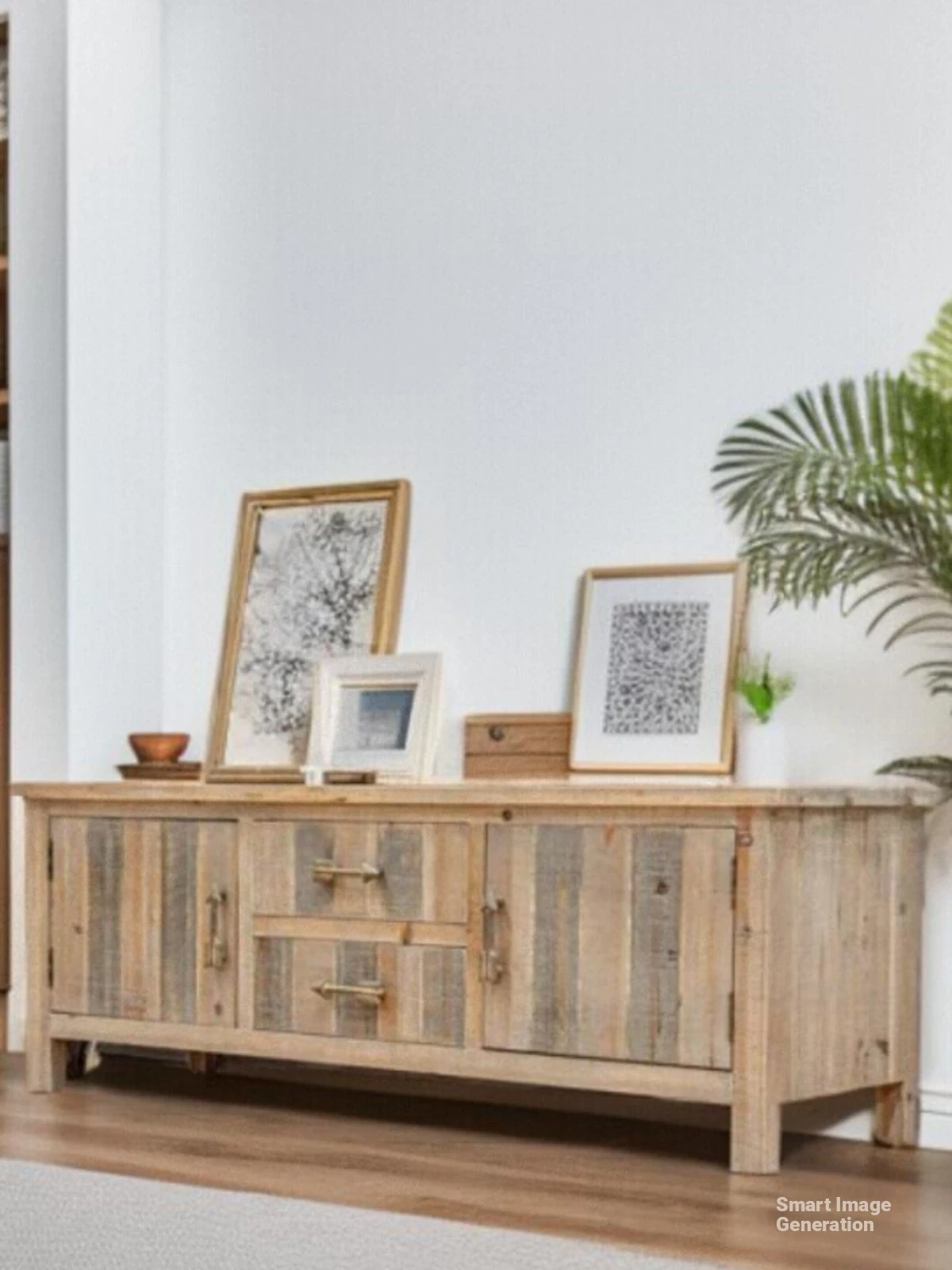 Translation: Solid Wood TV Stand - Modern Industrial Design for Living Room, 2023 New Vintage-Inspired High-End Luxury Combo