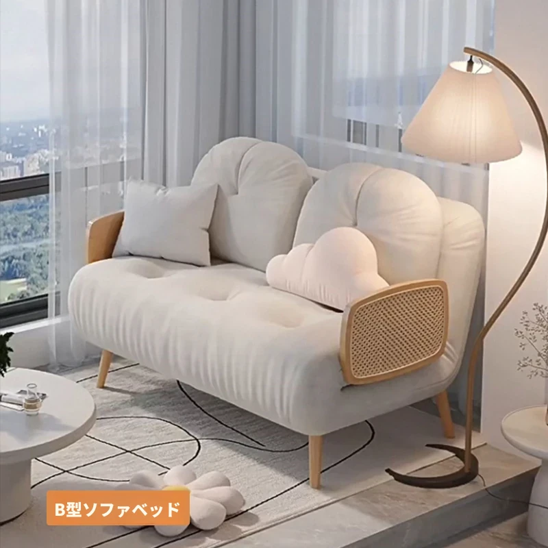 北欧風の天然木製ソファベッド|リビングにぴったり!座椅子としても使える多機能デザイン|おしゃれでコンパクトな二人用ソファ|カバーは洗えるからいつでも清潔!
