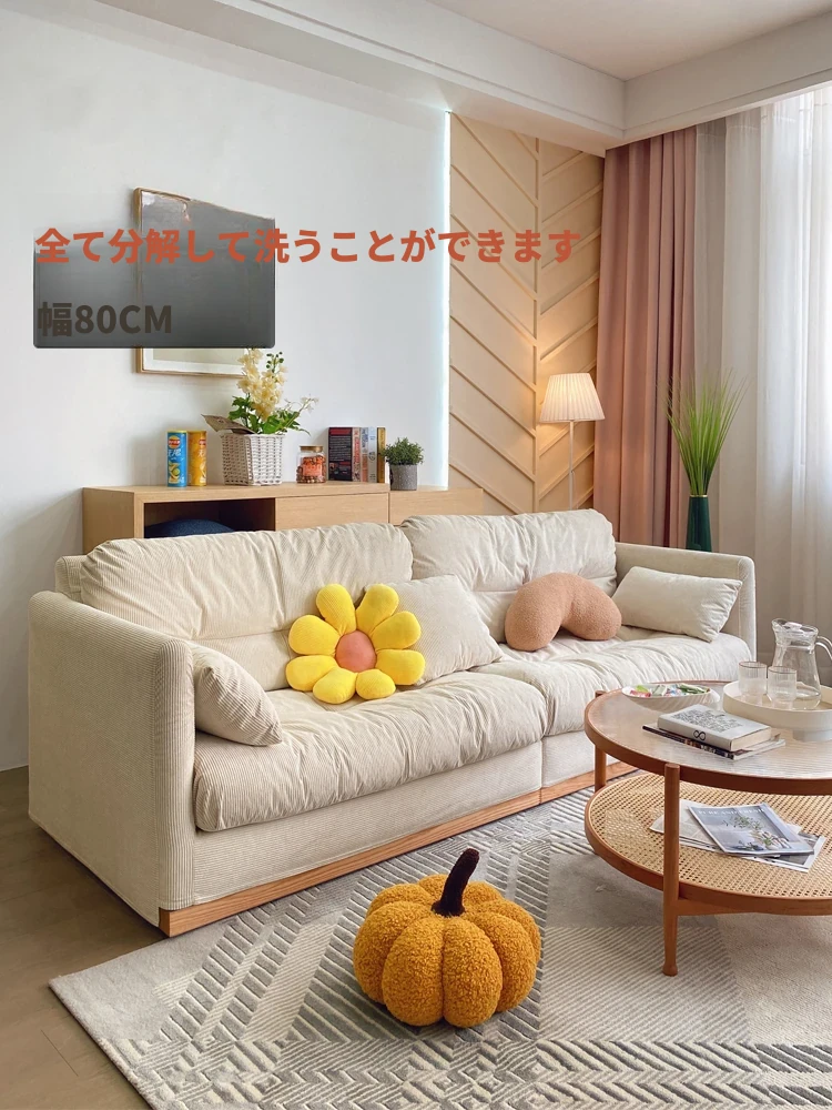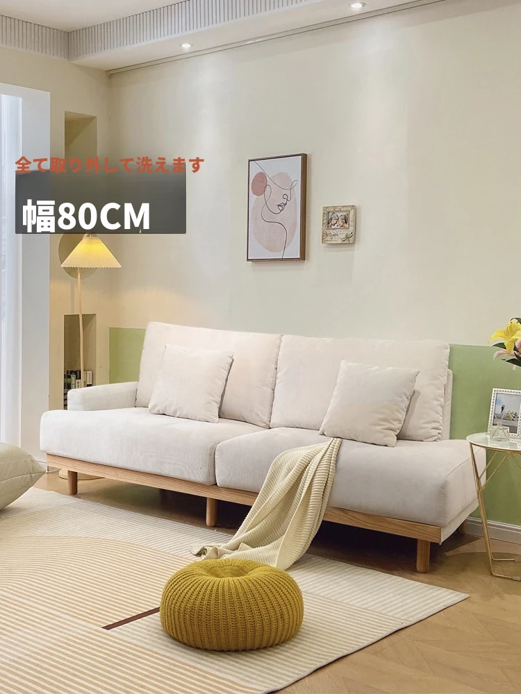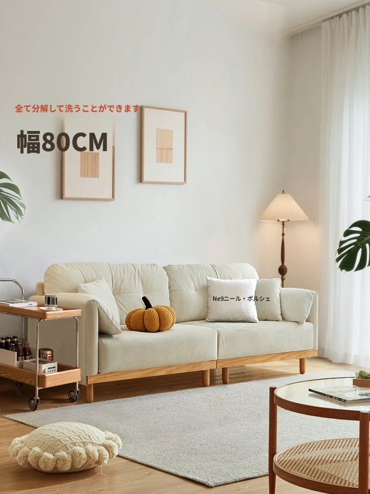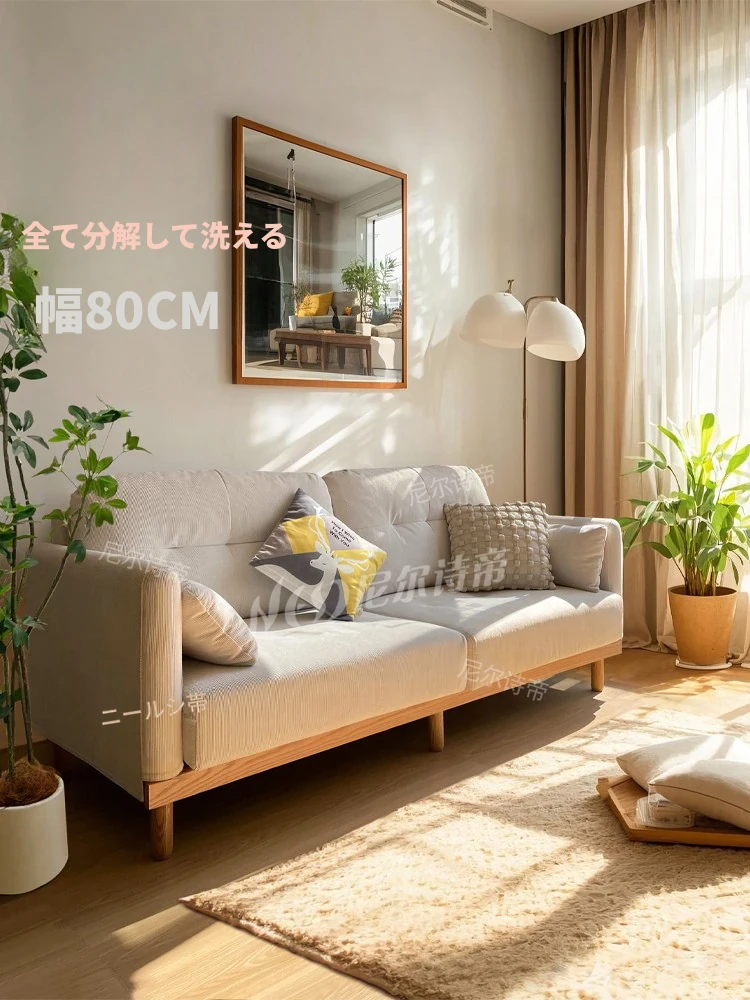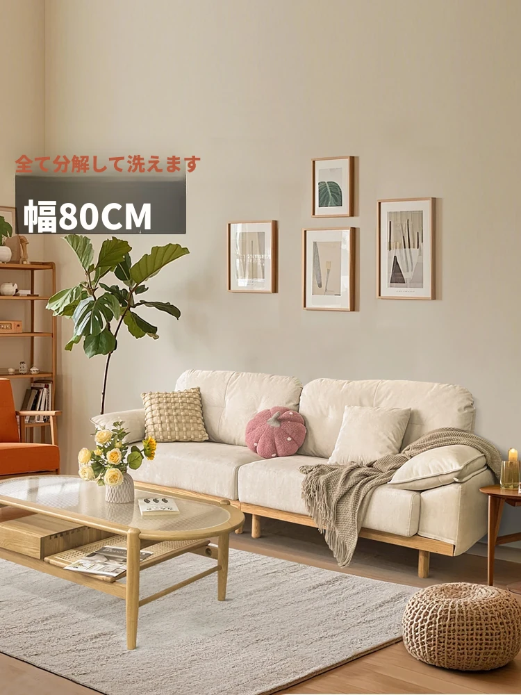80cm幅のニルシディ原木クリーム風日本式無垢材リビング用クラウドソファー - 小型住宅に最適、洗濯可能なファブリックでお手入れ簡単!おしゃれで快適な空間を演出します。