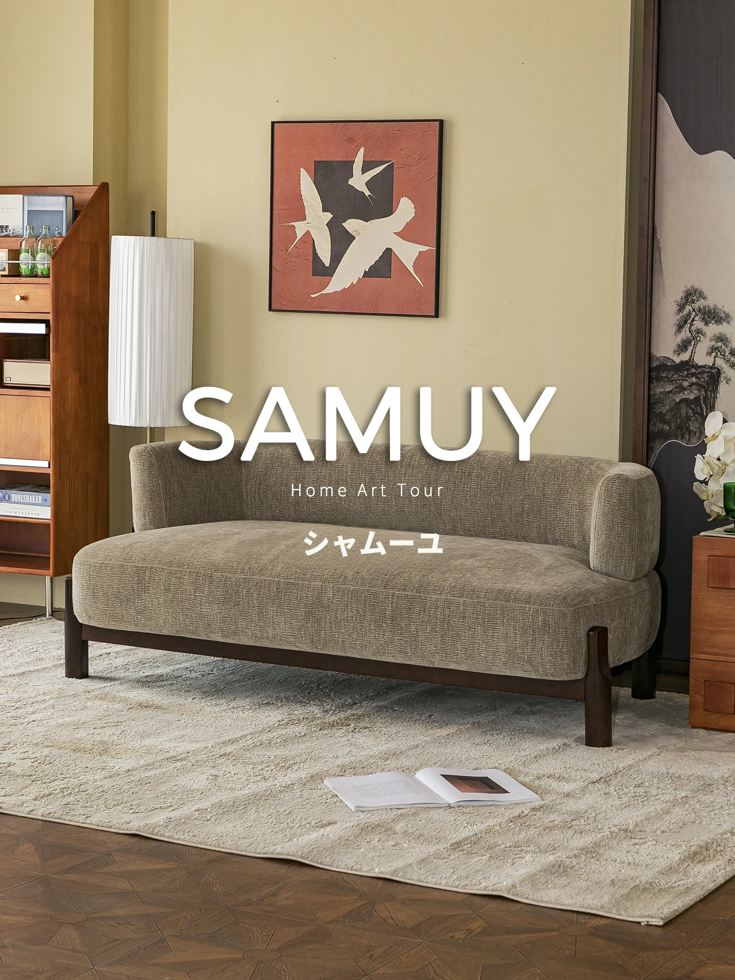 侘寂風の魅力を感じる民宿ホテルの小型客室用リビングバルコニー、デザイナーが手がけた無垢材のストレートソファ、リラックスしたい方にぴったりなラウンジチェア!心地よいひとときをお楽しみください。