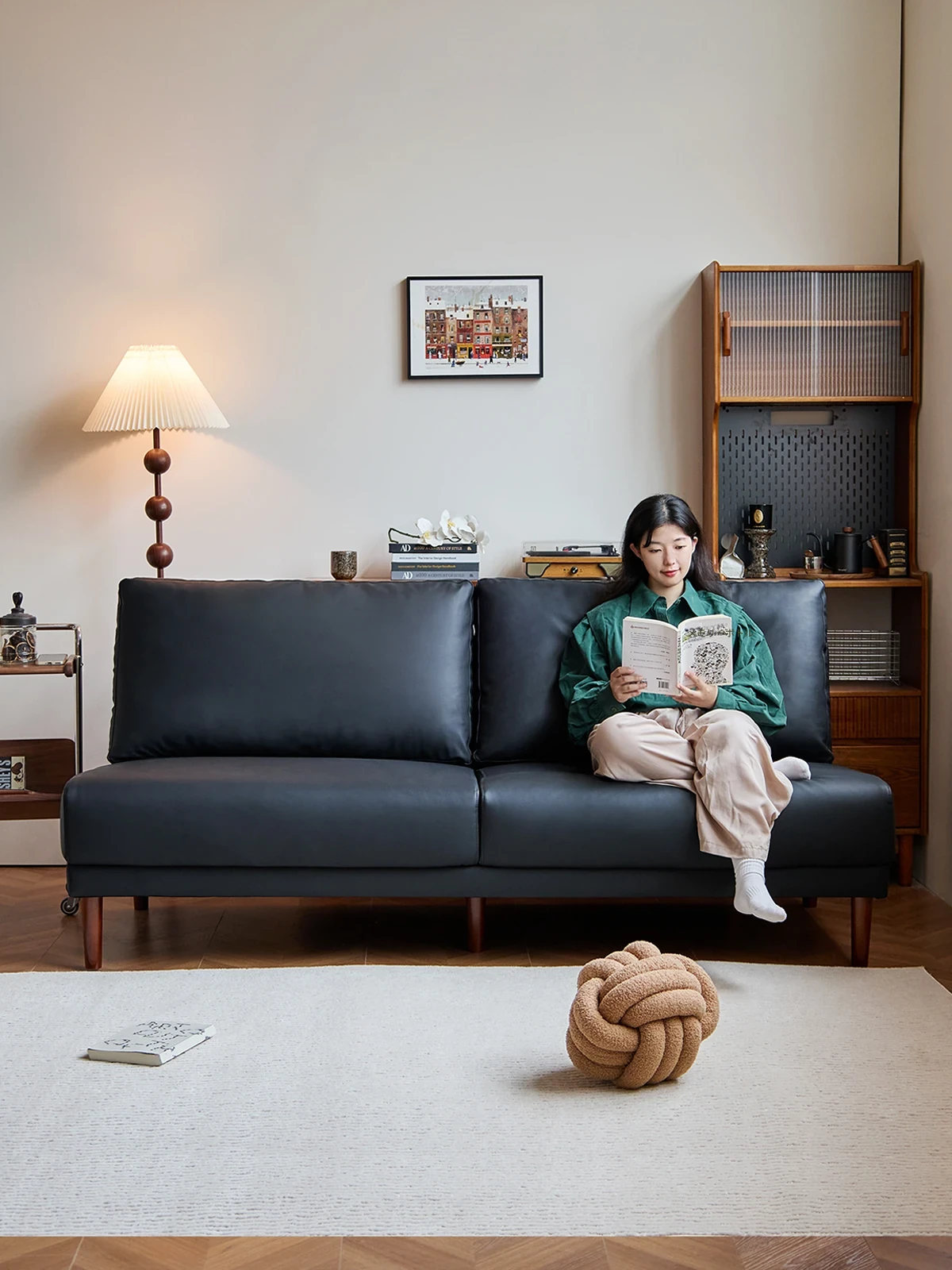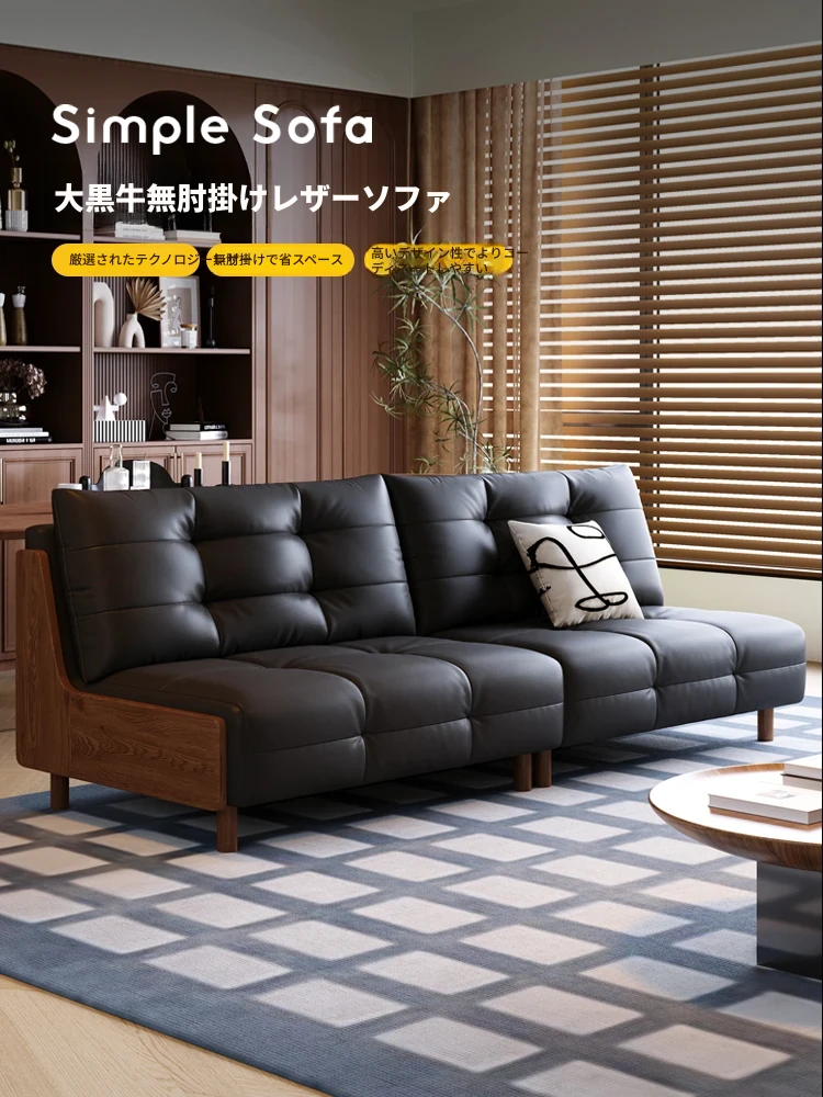 北欧デザインの無肘木製ソファ - 1.5人掛けのコンパクトサイズ、2メートルの大きなブラックレザーソファで、小さなリビングルームにぴったり!おしゃれで快適な空間を演出します。